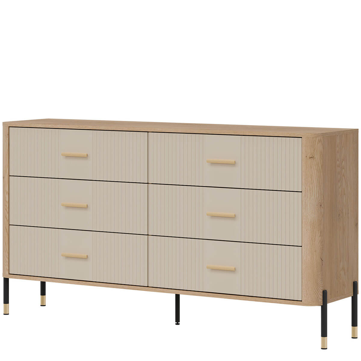 Комод DANTE LIVEO DT05 дуб кремона торро / кашемір / золоті ручки 6 шухляд