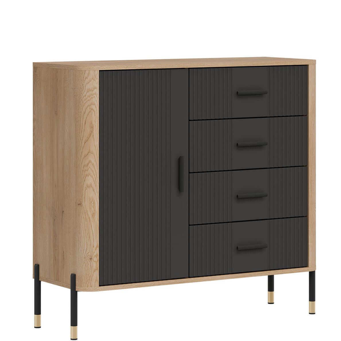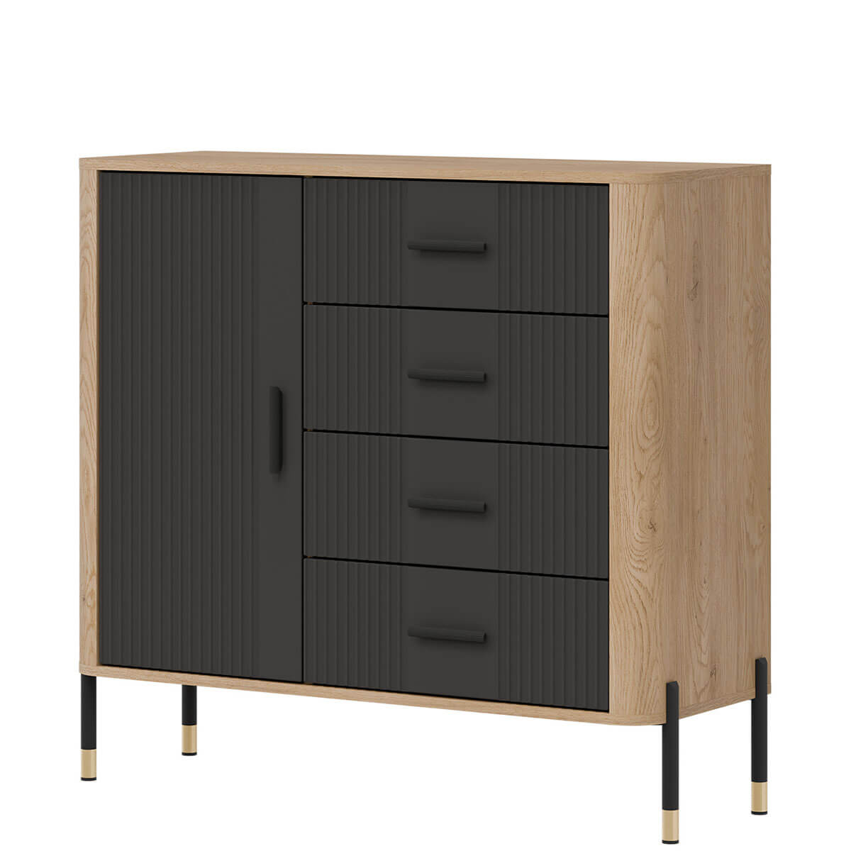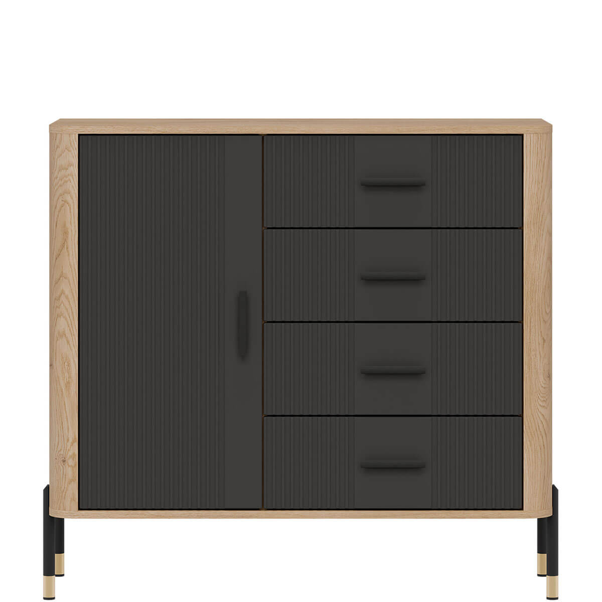 Комод DANTE LIVEO DT08 дуб кремона торро / антрацит / чорні ручки 1 дверка 4 шухляди