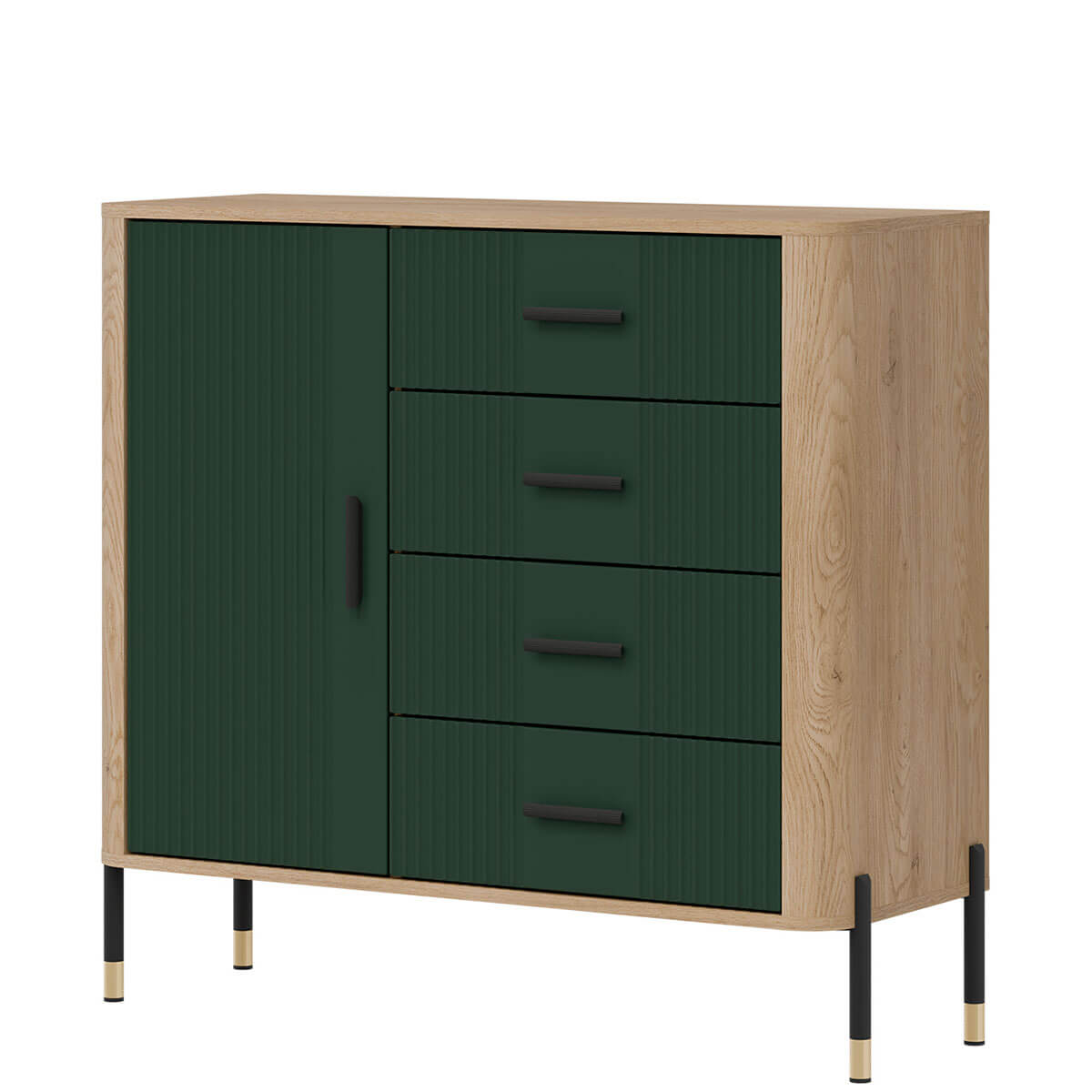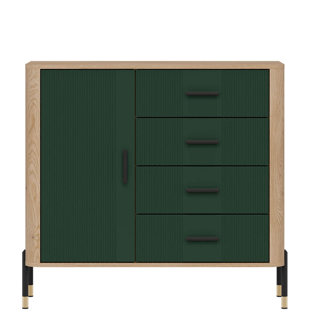 Комод DANTE LIVEO DT08 дуб кремона торро / зелений / чорні ручки 1 дверка 4 шухляди