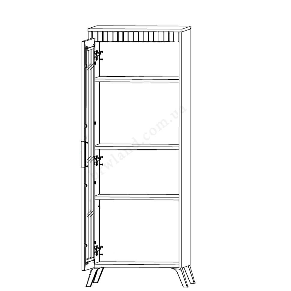 Вітрина Lounge BRW REG1W містить одне закрите відділення. За дверцятами зі скляною вставкою розташовані три полиці.