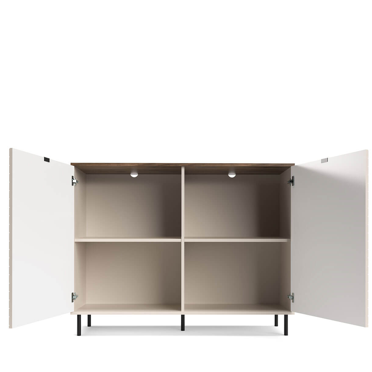 Тумба Ево Мебельбос 2D містить два закриті відділення з полицею в кожному.