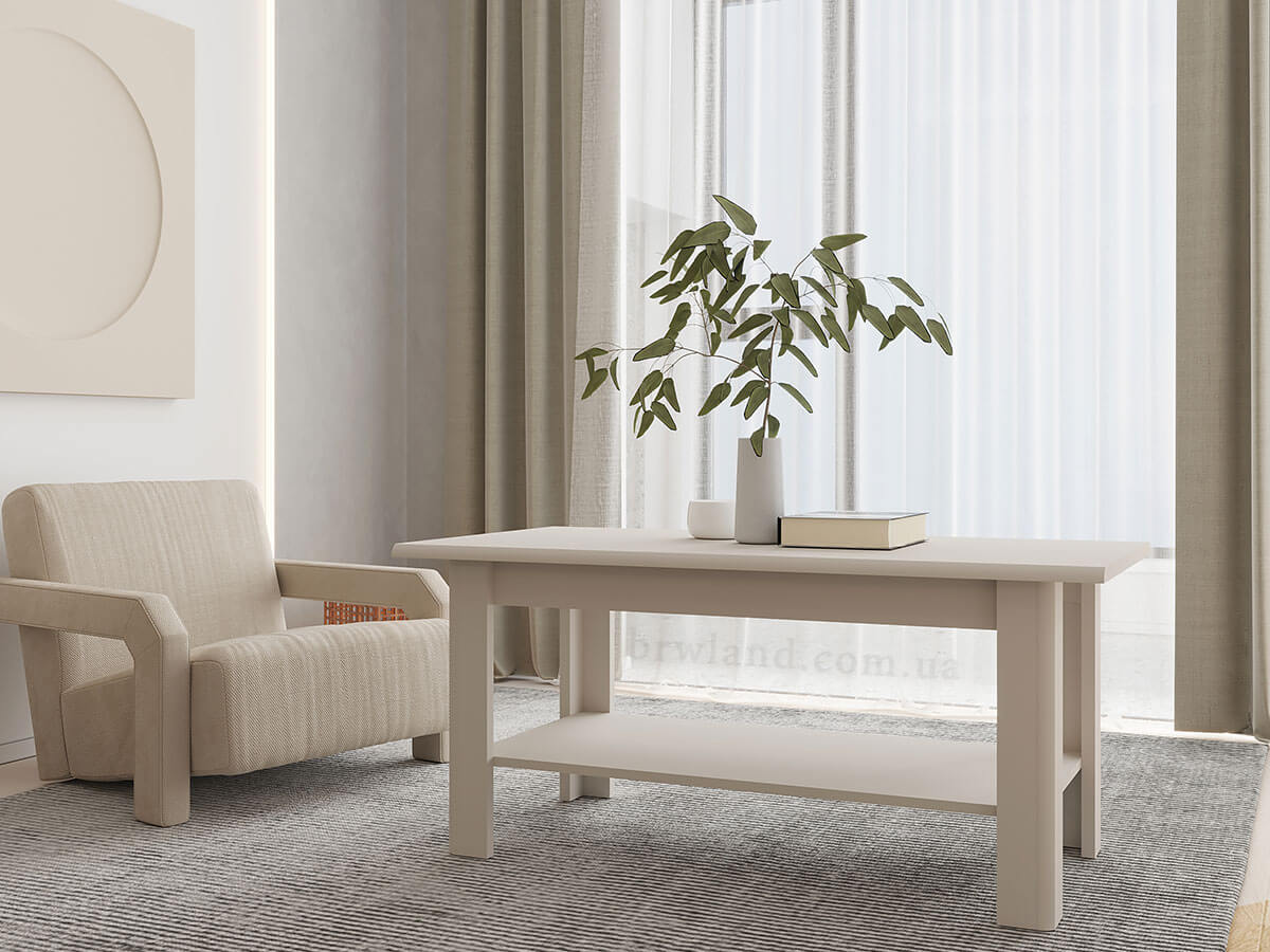 Журнальний столик London Gerbor LAW/115N обладнаний практичною полицею під стільницею.