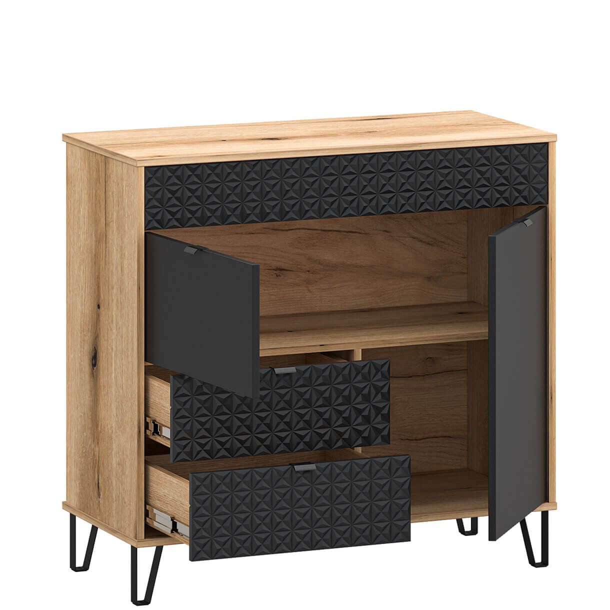 Комод Беллано Мебельбос 2D2S містить дві шухляди та два закриті відділення.