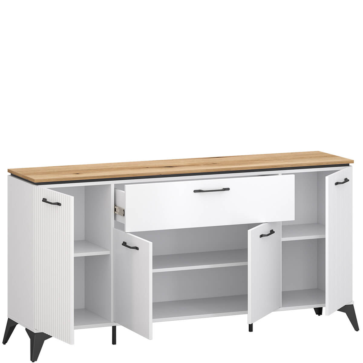 Комод Велутто Мебельбос 4D1S містить шухляду та три закриті відділення з полицею в кожному.