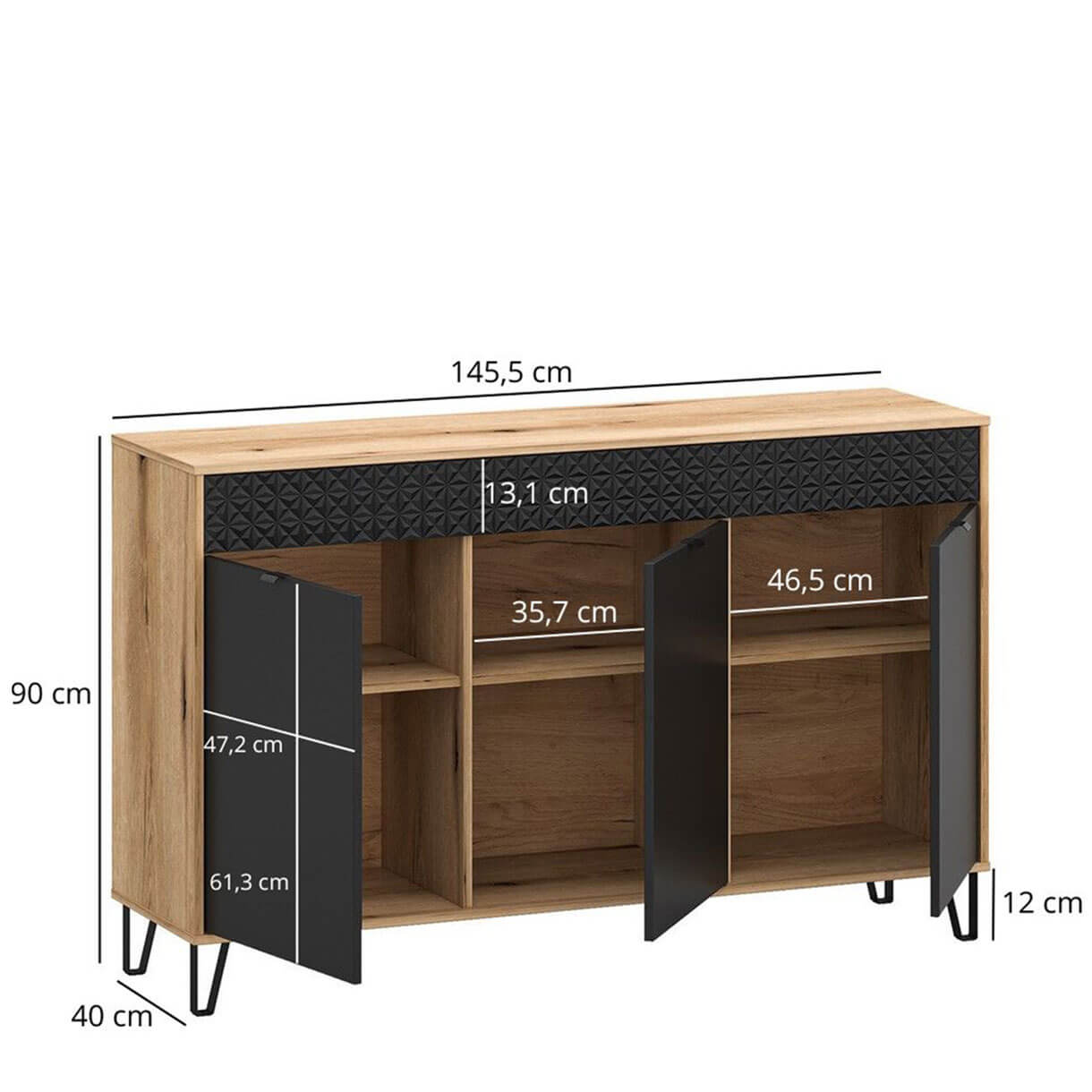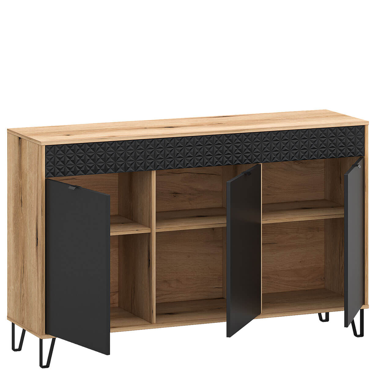 Тумба Беллано Мебельбос 3D містить три закриті відділення з поліцею в кожному.