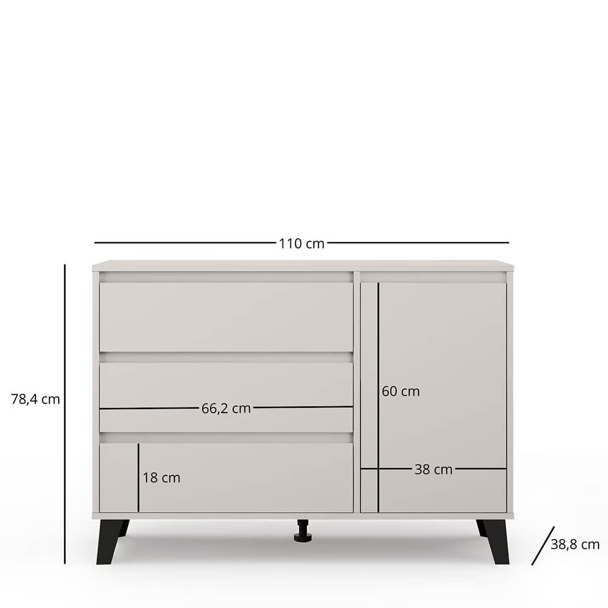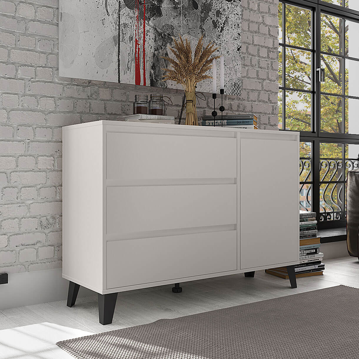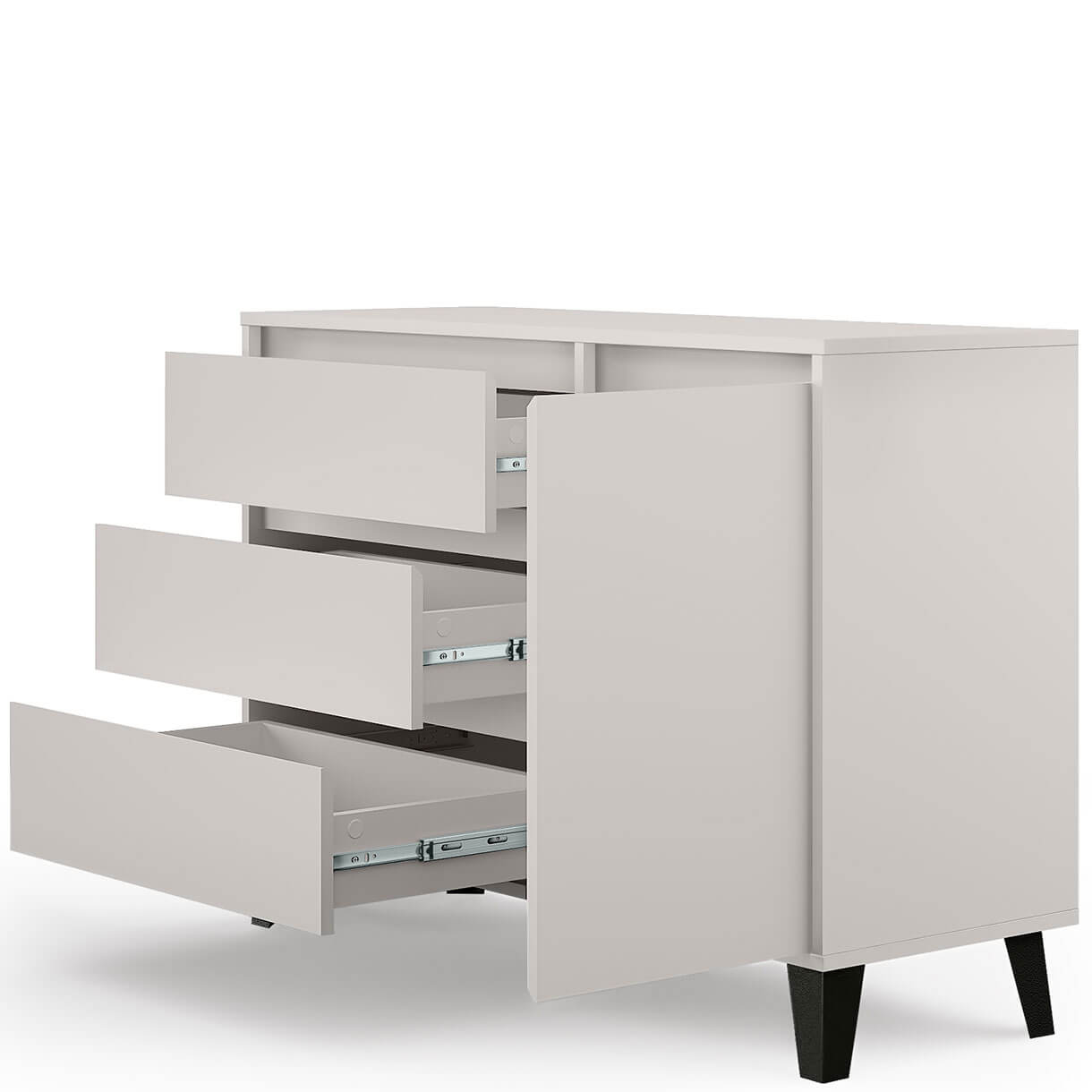 Комод Борг Мебельбос 1D3S містить три шухляди та закрите відділення з полицею всередині.