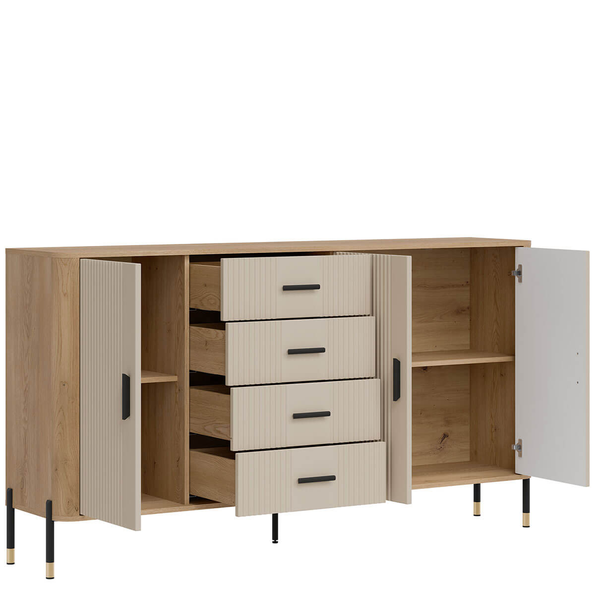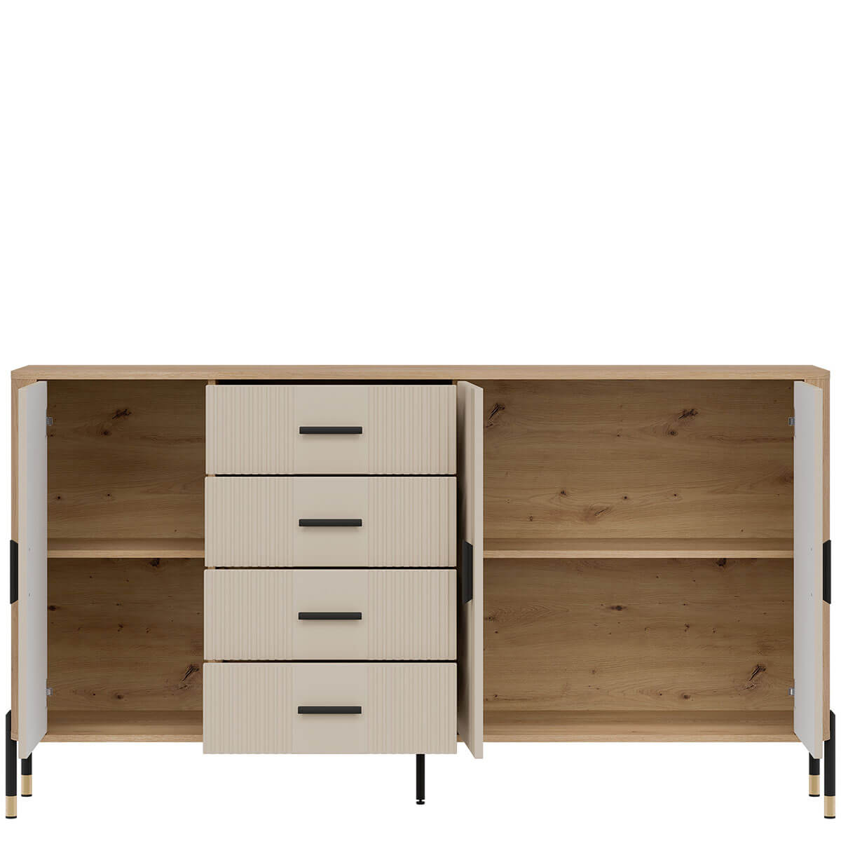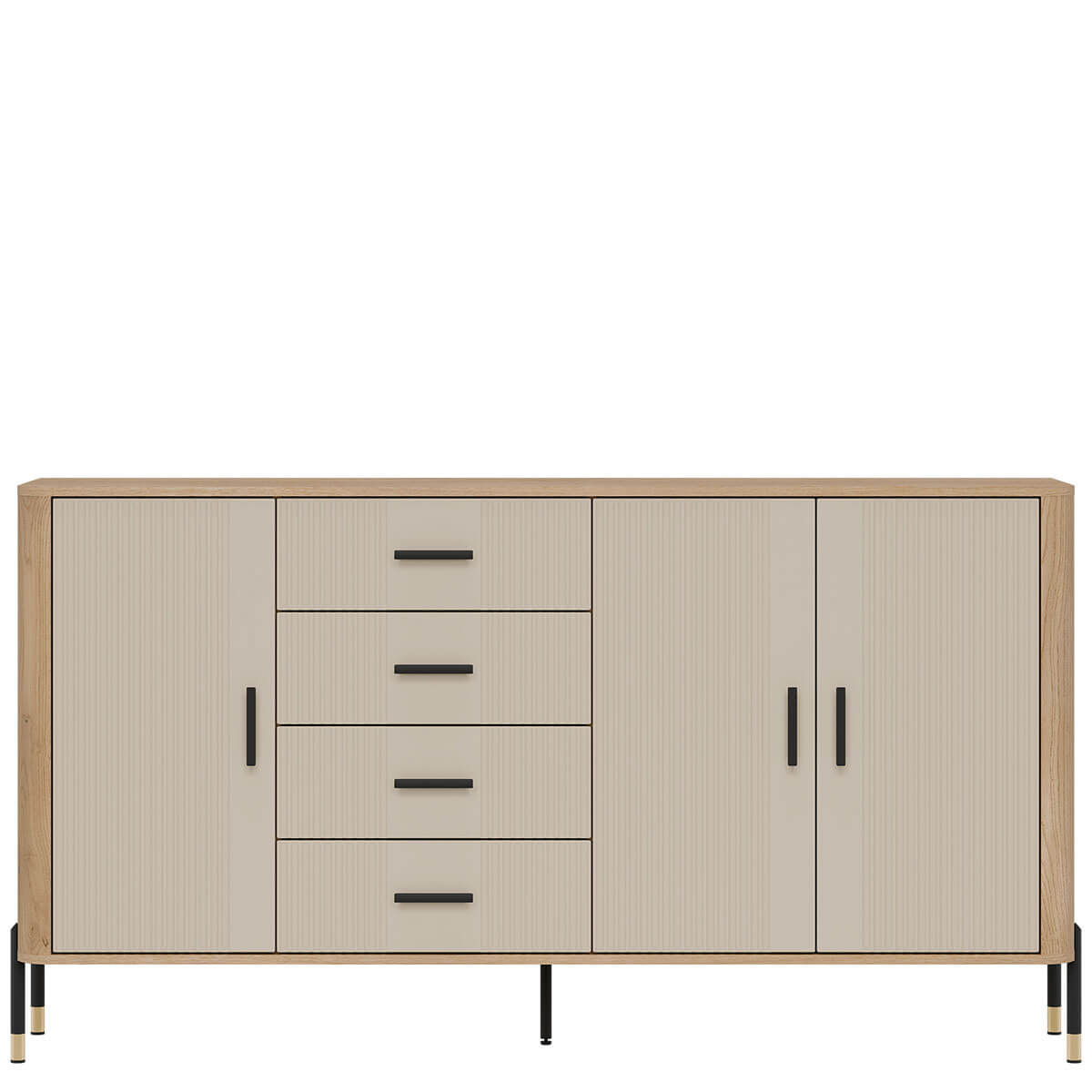 Комод Данте Лівео DT10 містить чотири шухляди та два закриті відділення з полицею в кожному.