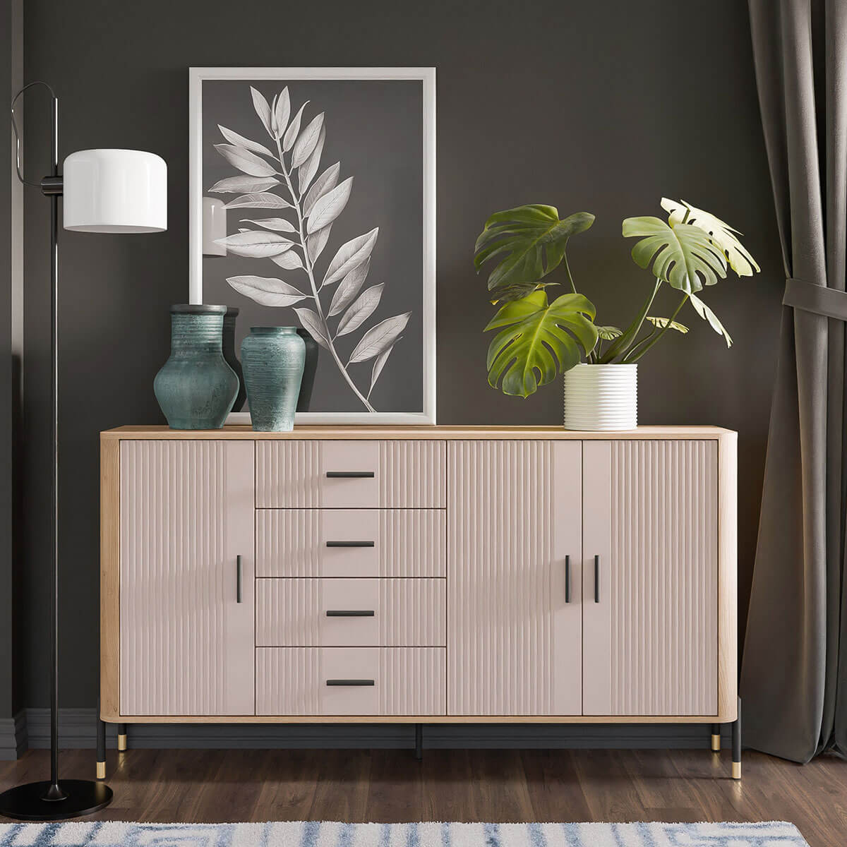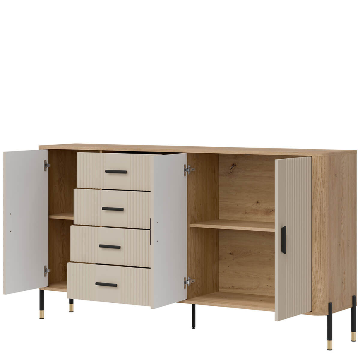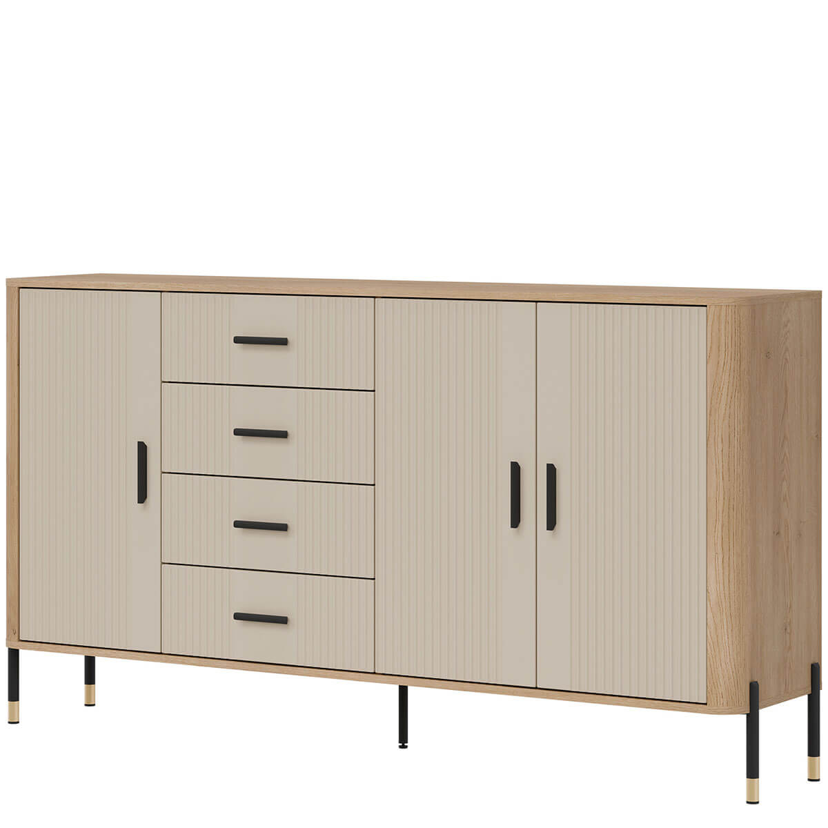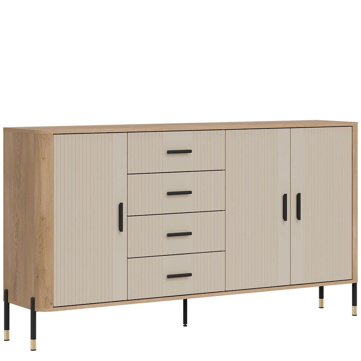 Комод Данте Лівео DT10 містить чотири шухляди та два закриті відділення з полицею в кожному.