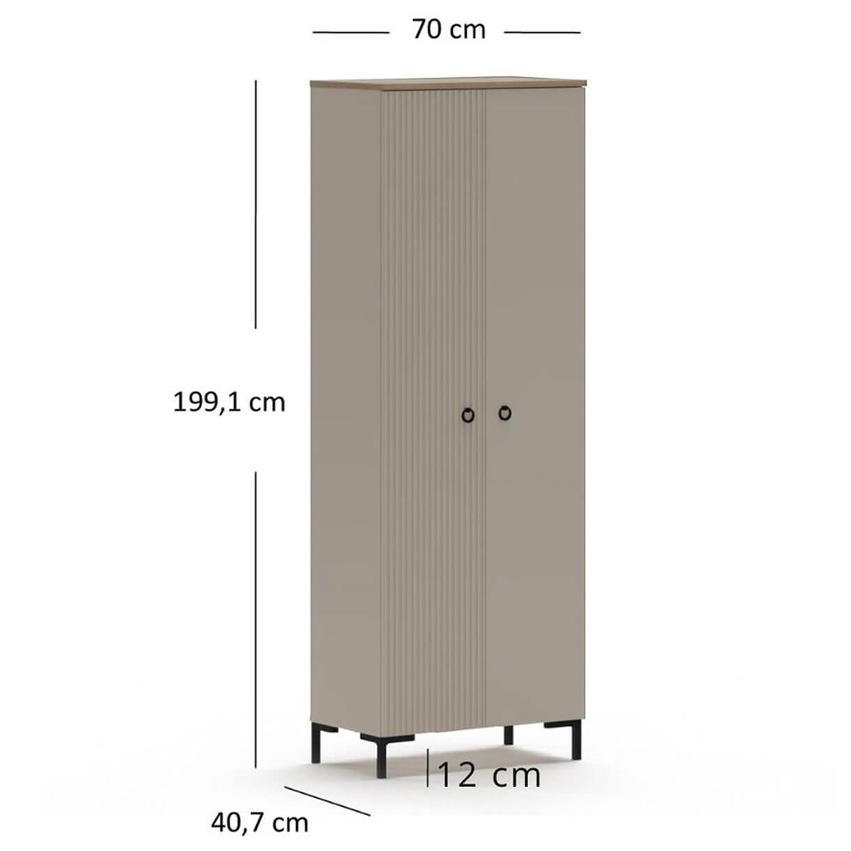 Шафа Домініка Мебельбос 2D містить одне закрите відділення з двома полицями та висувною штангою для вішалок усередині.