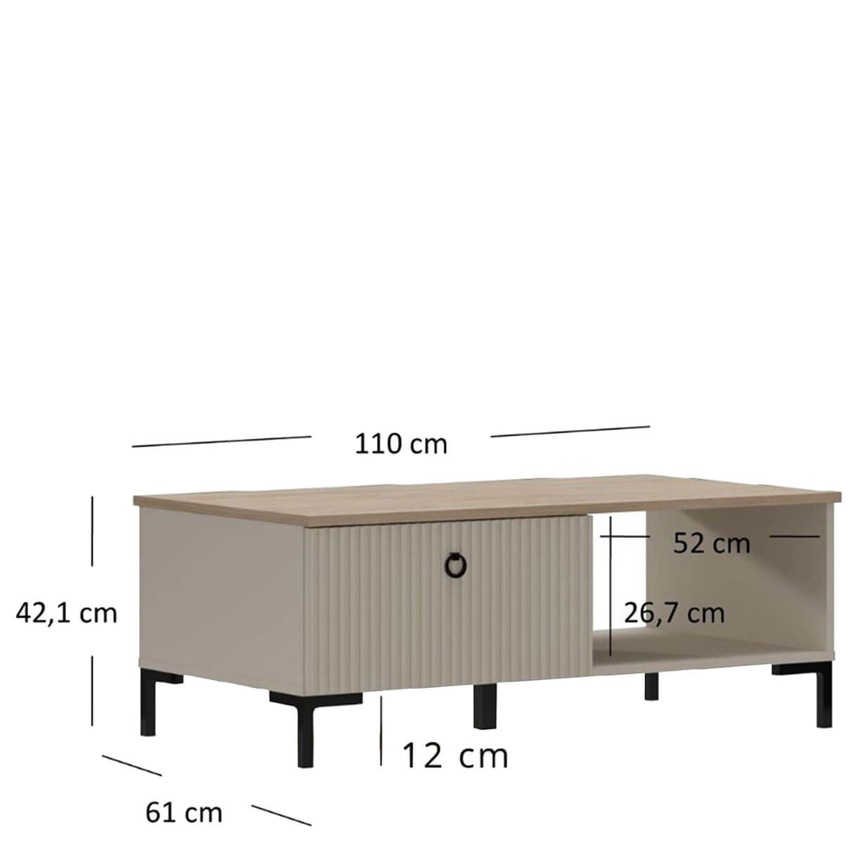 Журнальний столик Домініка Мебельбос 1S містить шухляду та нішу.