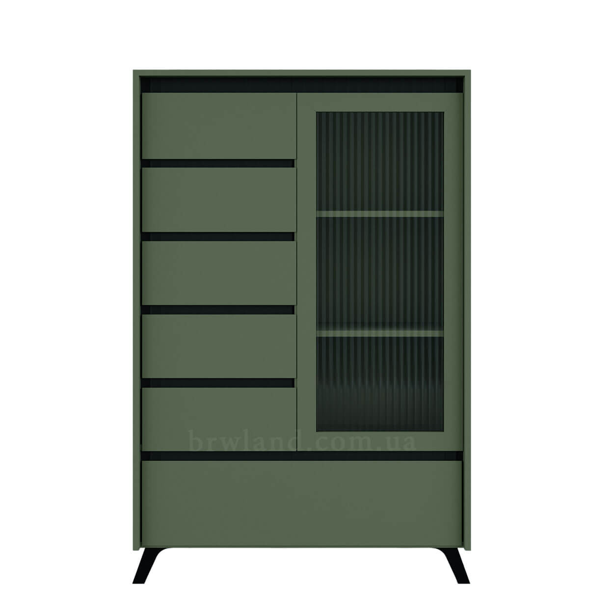 Вітрина ЛАУНДЖ БРВ REG1W5S1K зелений димчастий / чорний 2 двері 5 шухляд