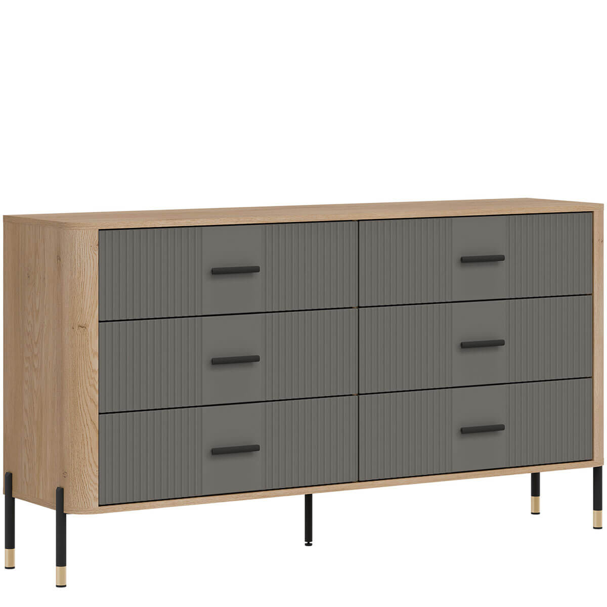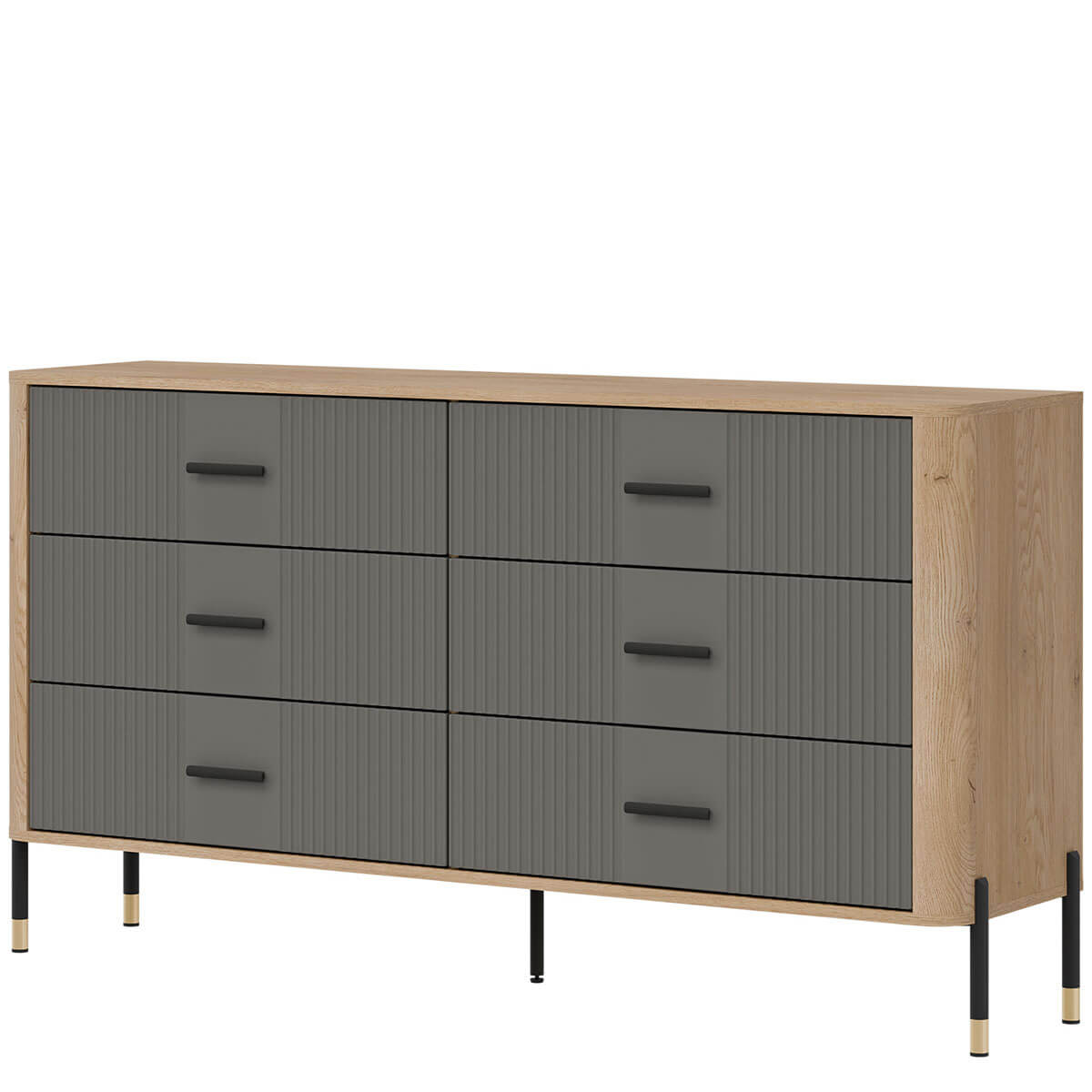 Комод DANTE LIVEO DT05 дуб кремона торро / сірий / чорні ручки 6 Drawers