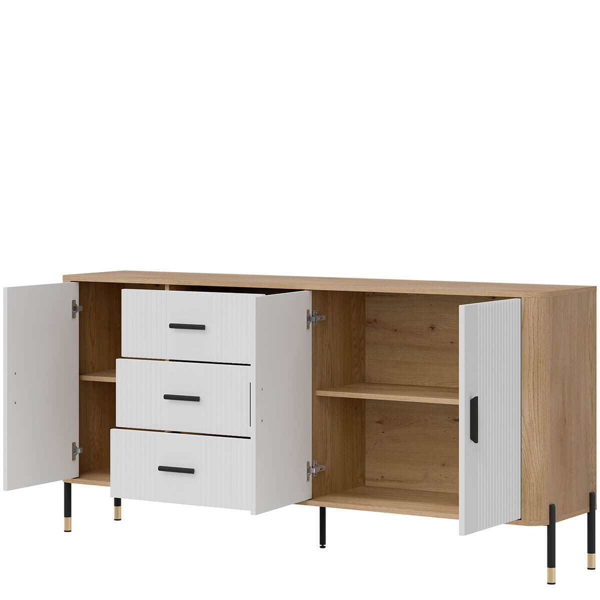 Комод Данте Лівео DT07 містить три шухляди та два закриті відділення з полицею в кожному.