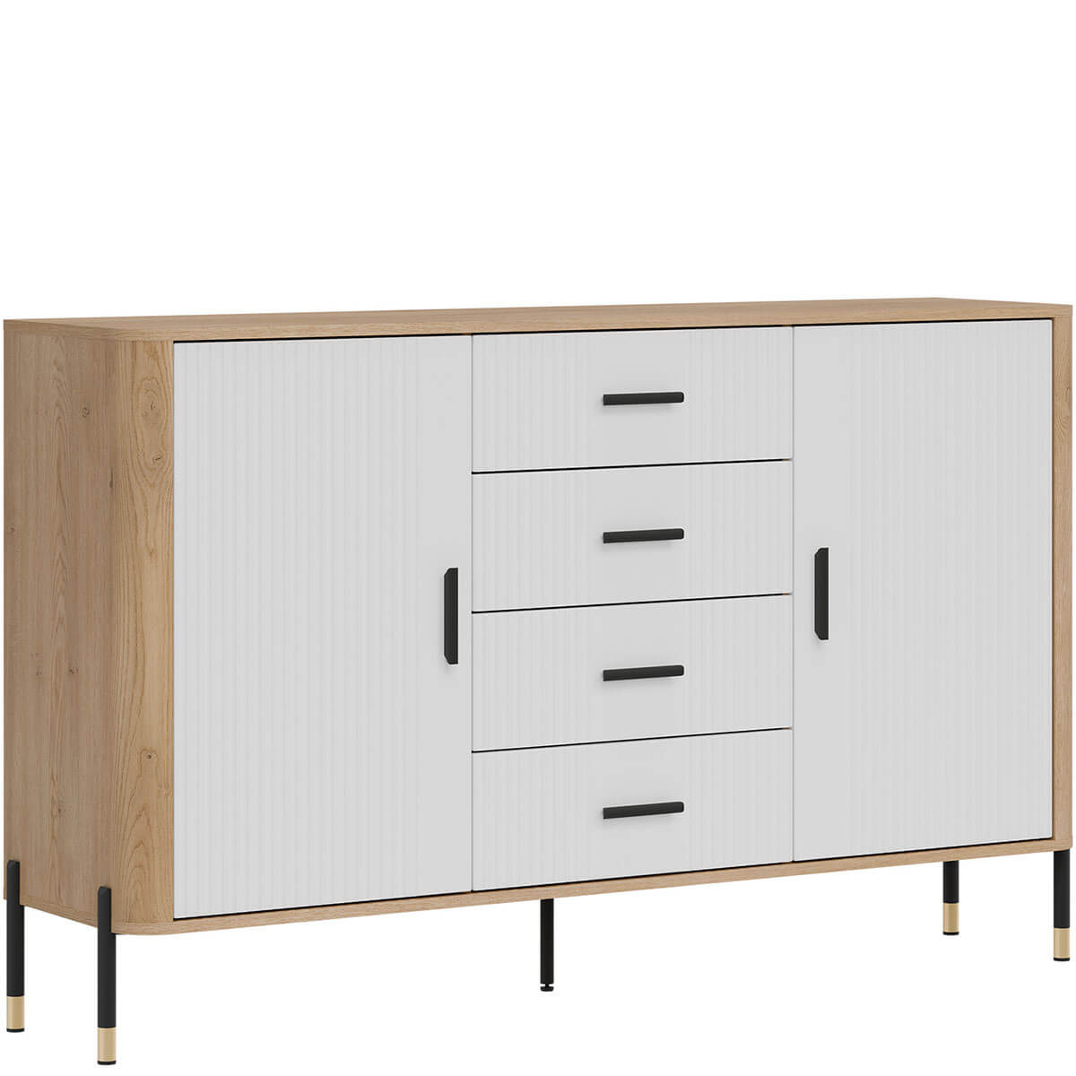 Комод DANTE LIVEO DT09 дуб кремона торро / білий / чорні ручки 2 Doors 4 Drawers
