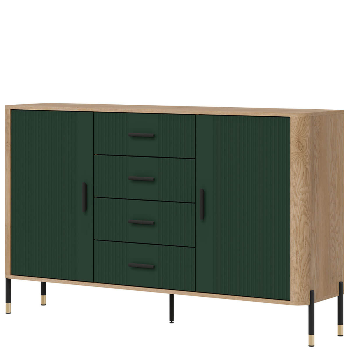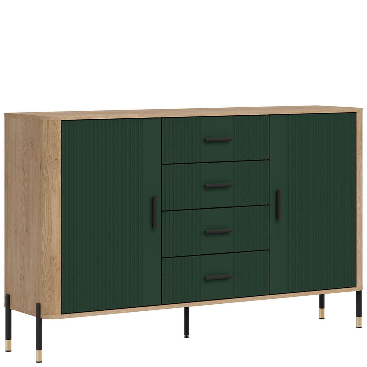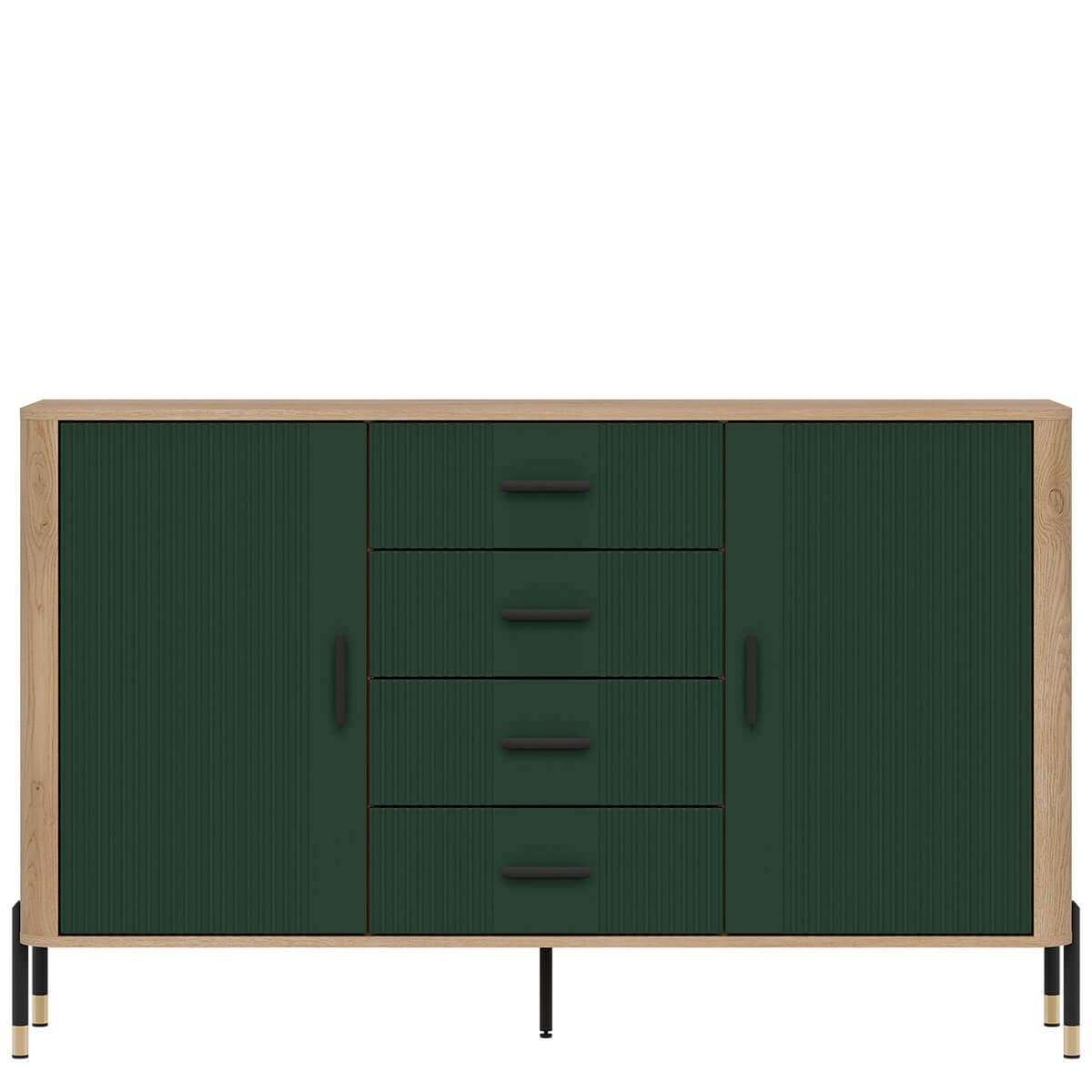 Комод DANTE LIVEO DT09 дуб кремона торро / зелений / чорні ручки 2 Doors 4 Drawers