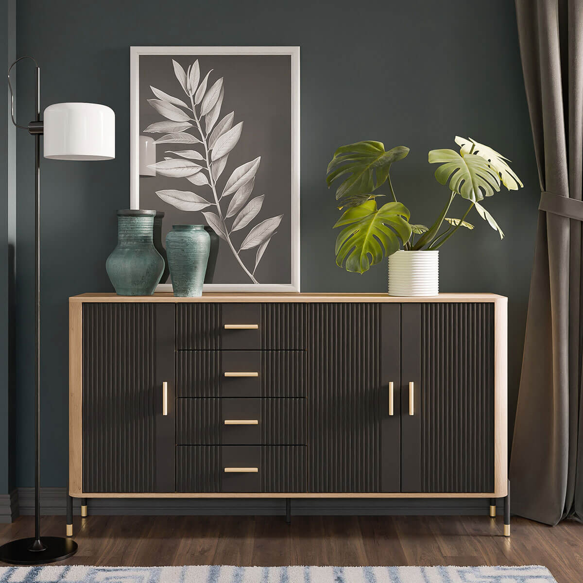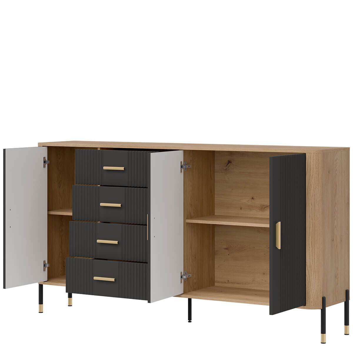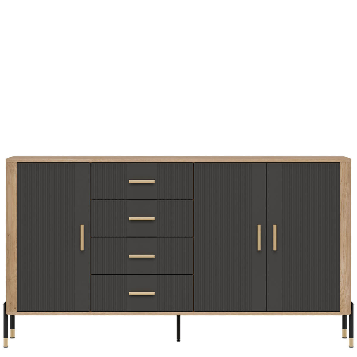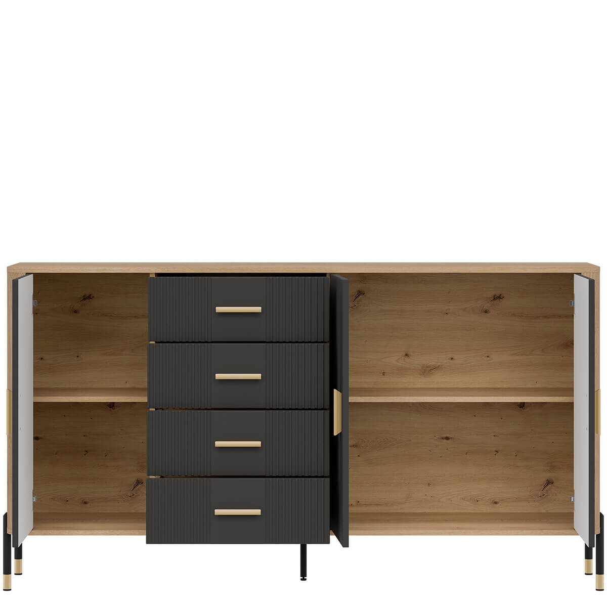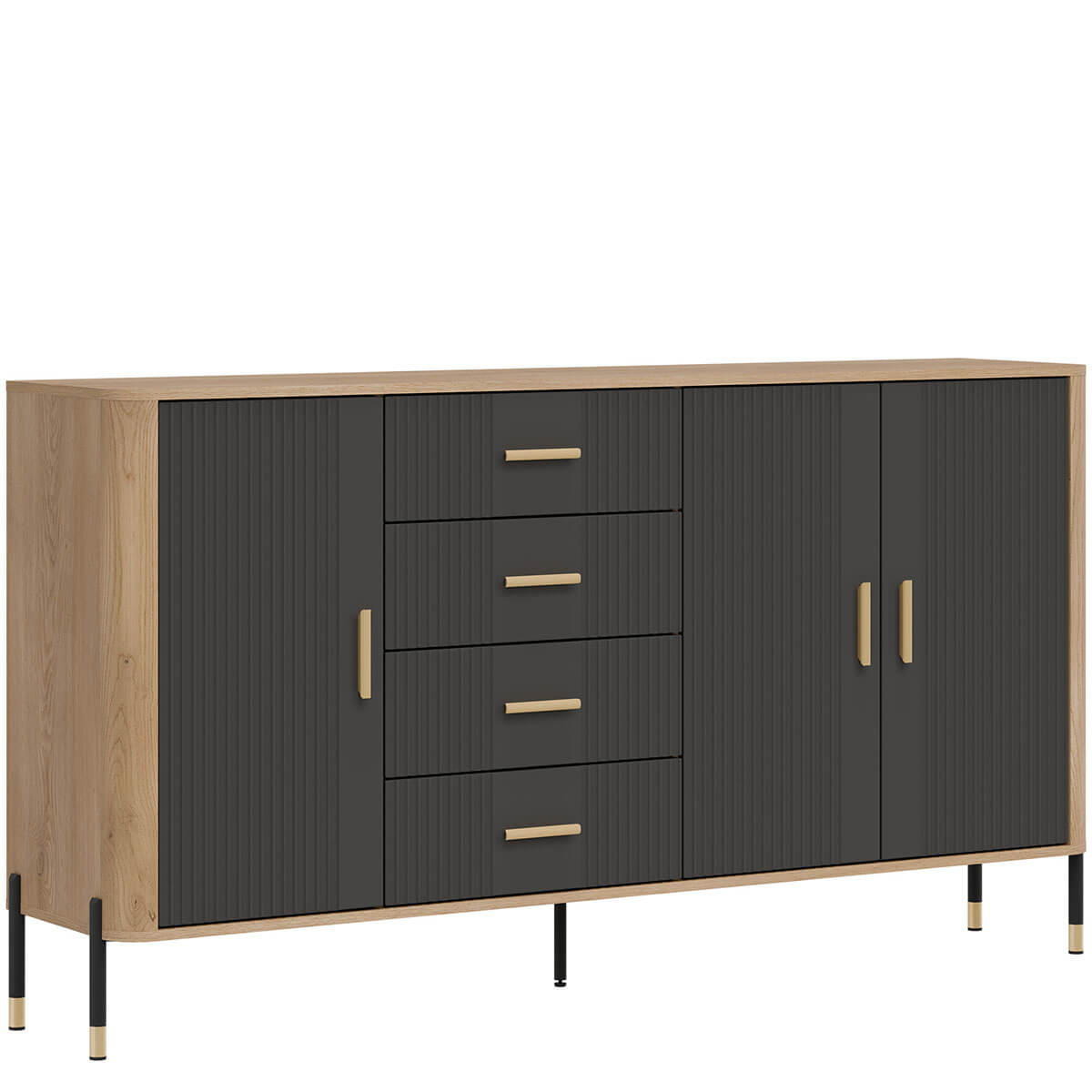Комод Данте Лівео DT10 містить чотири шухляди та два закриті відділення з полицею в кожному.