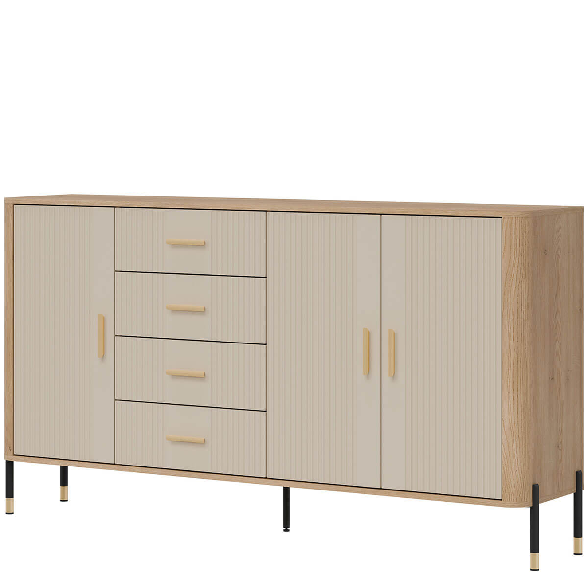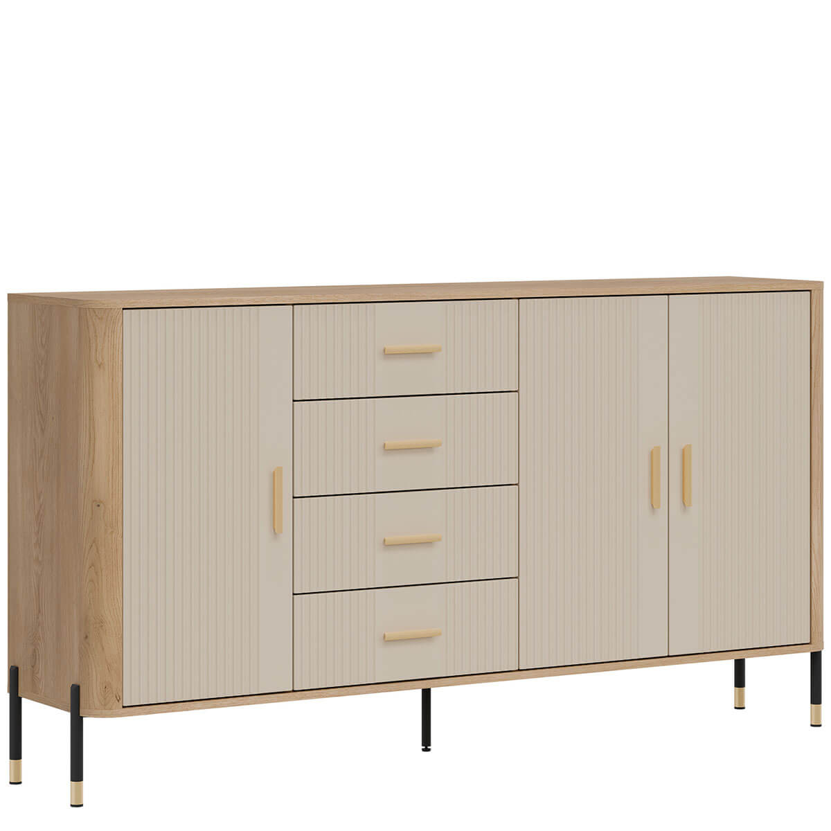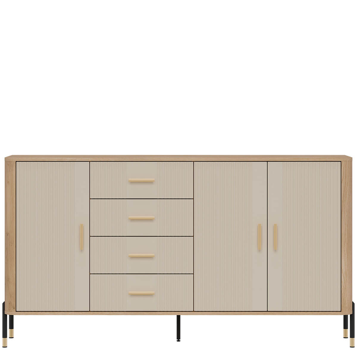 Комод Данте Лівео DT10 містить чотири шухляди та два закриті відділення з полицею в кожному.