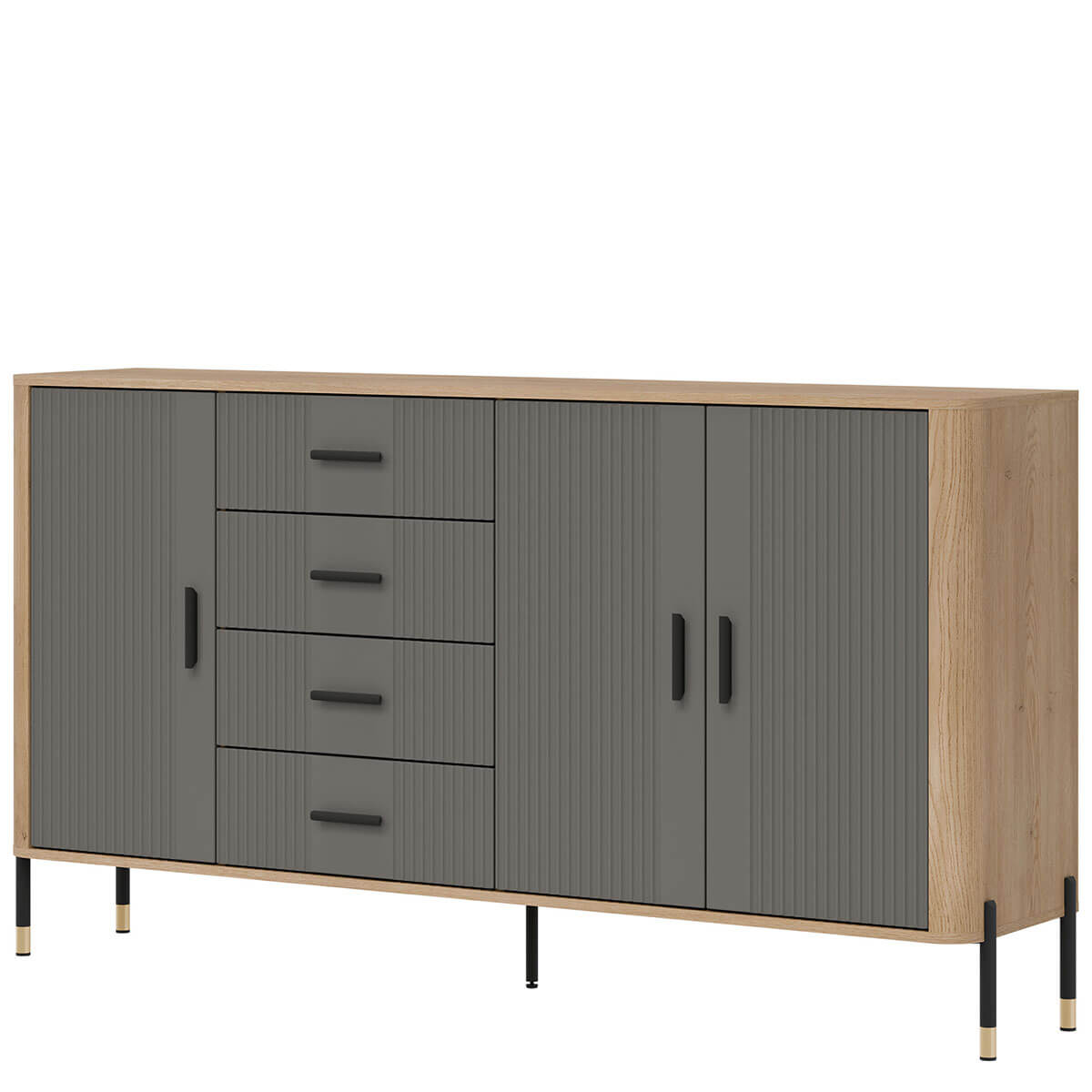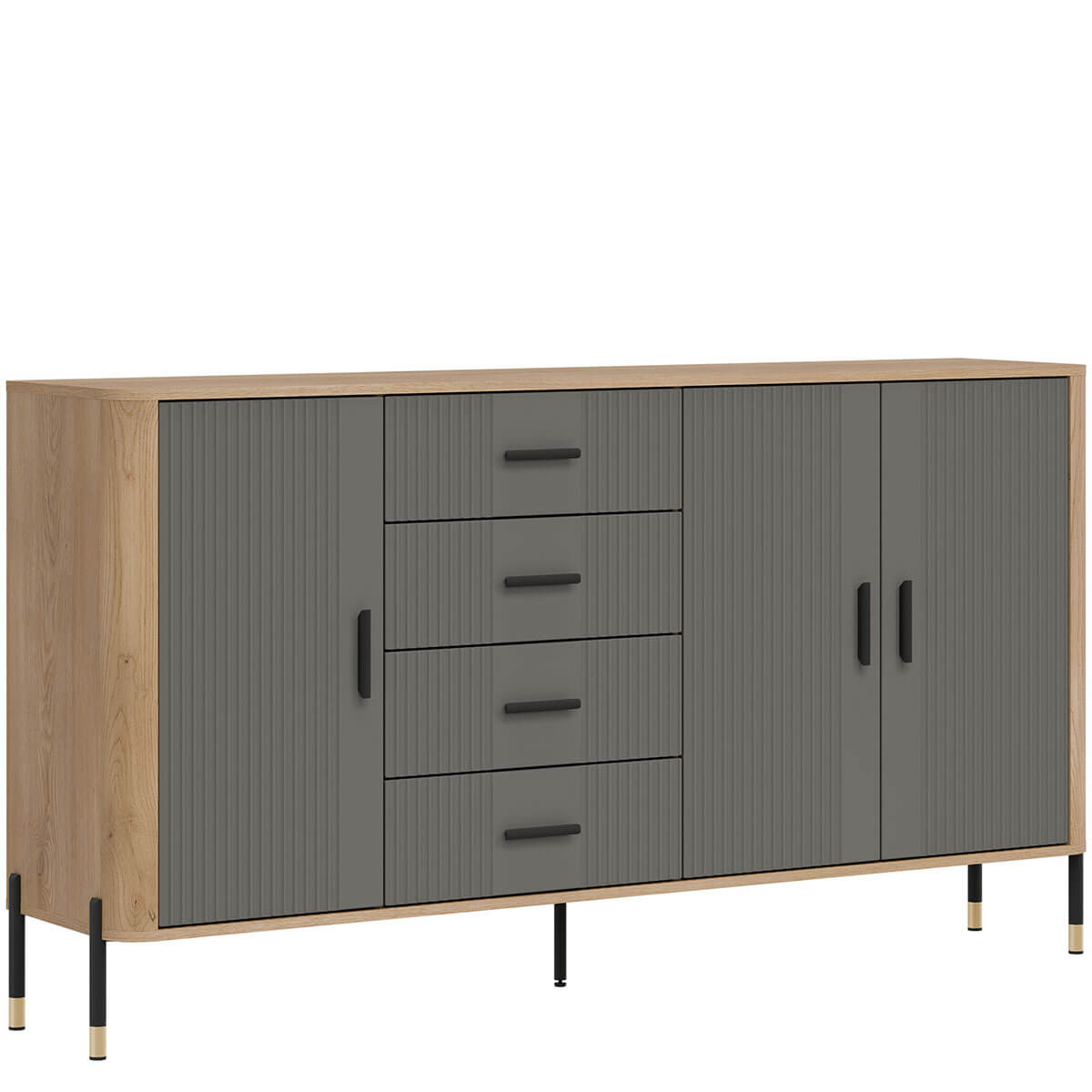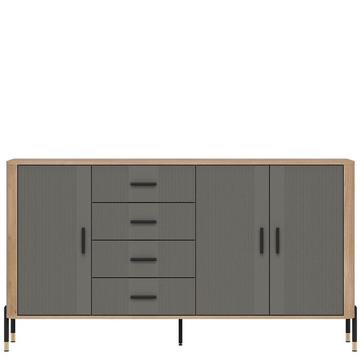 Комод Данте Лівео DT10 містить чотири шухляди та два закриті відділення з полицею в кожному.