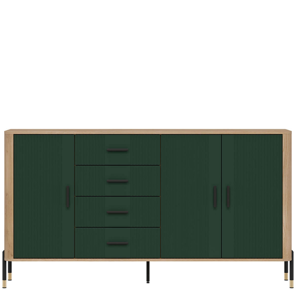 Комод DANTE LIVEO DT10 дуб кремона торро / зелений / чорні ручки 3 Doors 4 Drawers