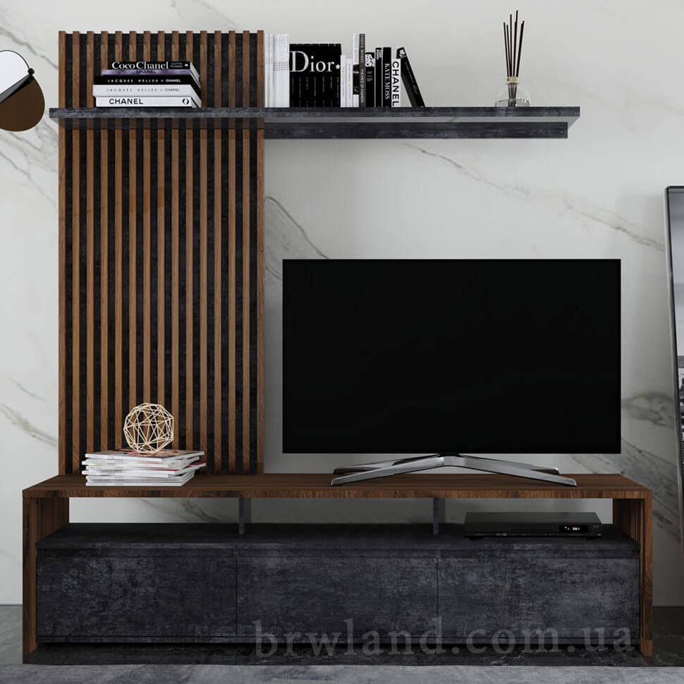 Стінка НЕО ГЕРБОР дуб ліворно / бетон темний – меблевий комплект для вітальні.