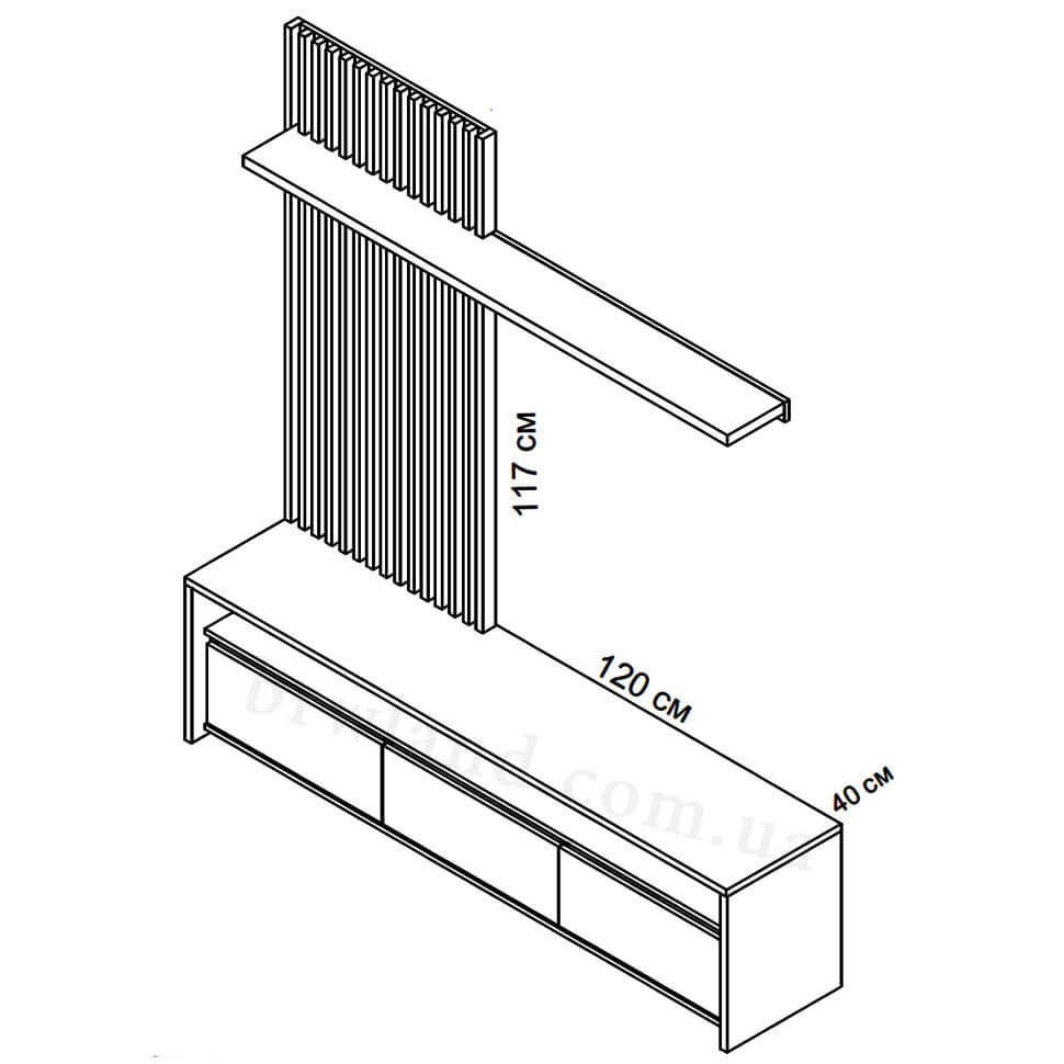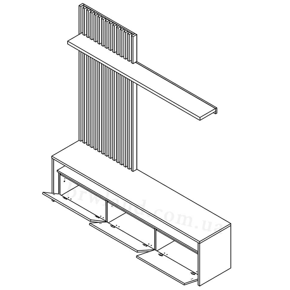 • тумба під телевізор – 1 шт. (три відкритих відділення, троє відкидних дверей);