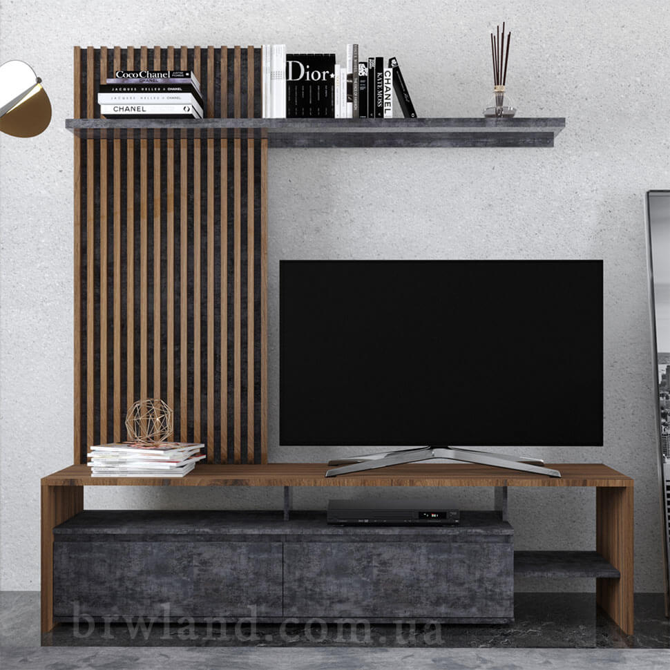 Стінка НЕО 2 ГЕРБОР дуб ліворно / бетон темний – меблевий комплект для вітальні.