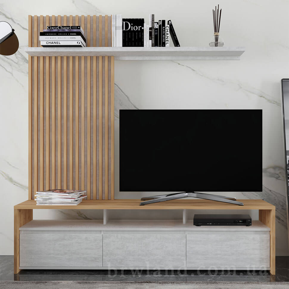 Стінка НЕО ГЕРБОР дуб крафт золотий / бетон стайл – меблевий комплект для вітальні.