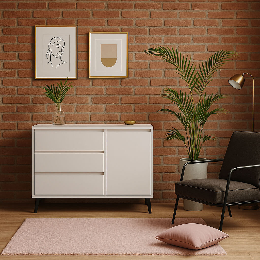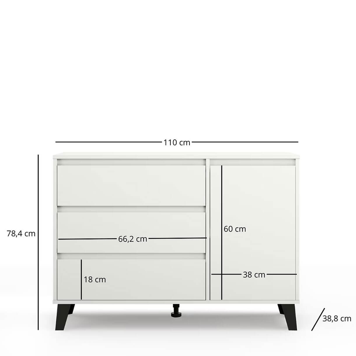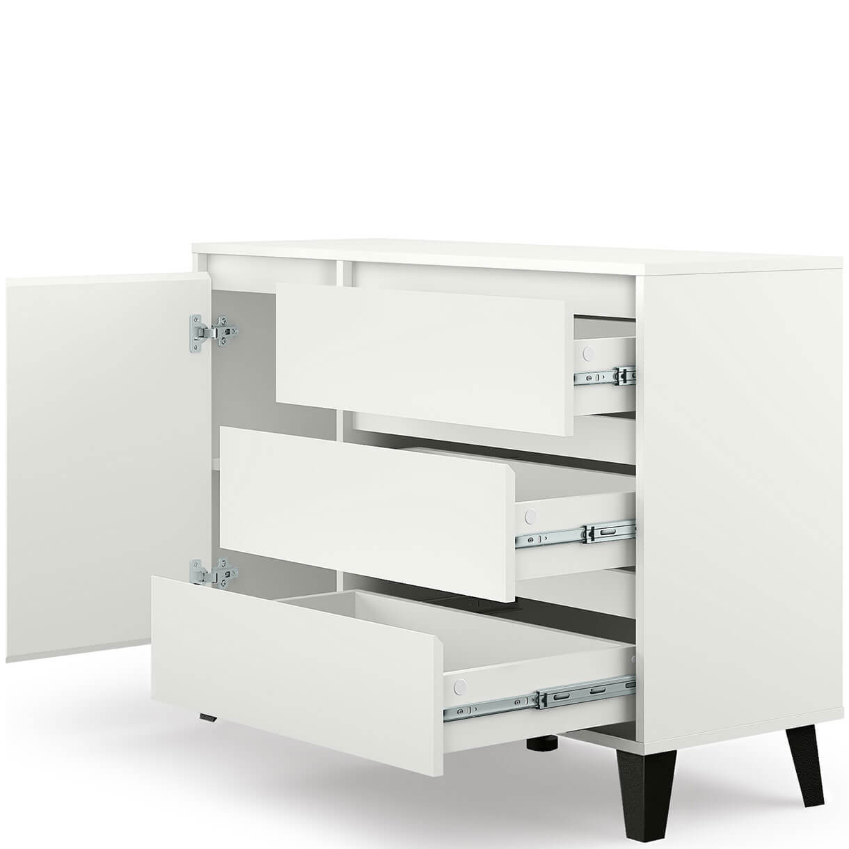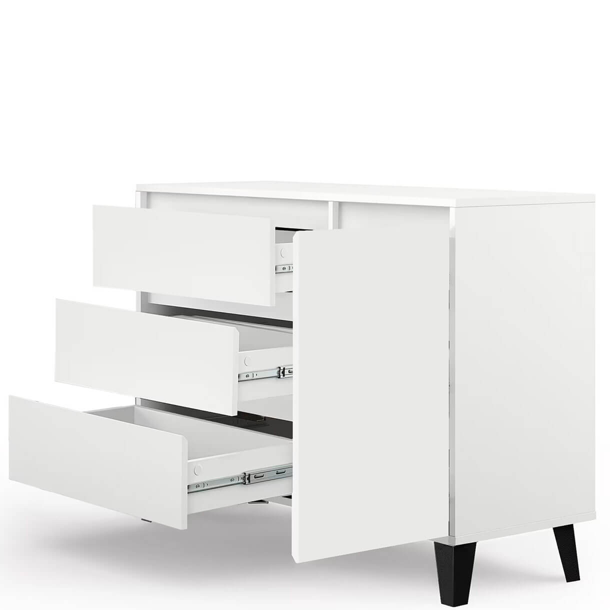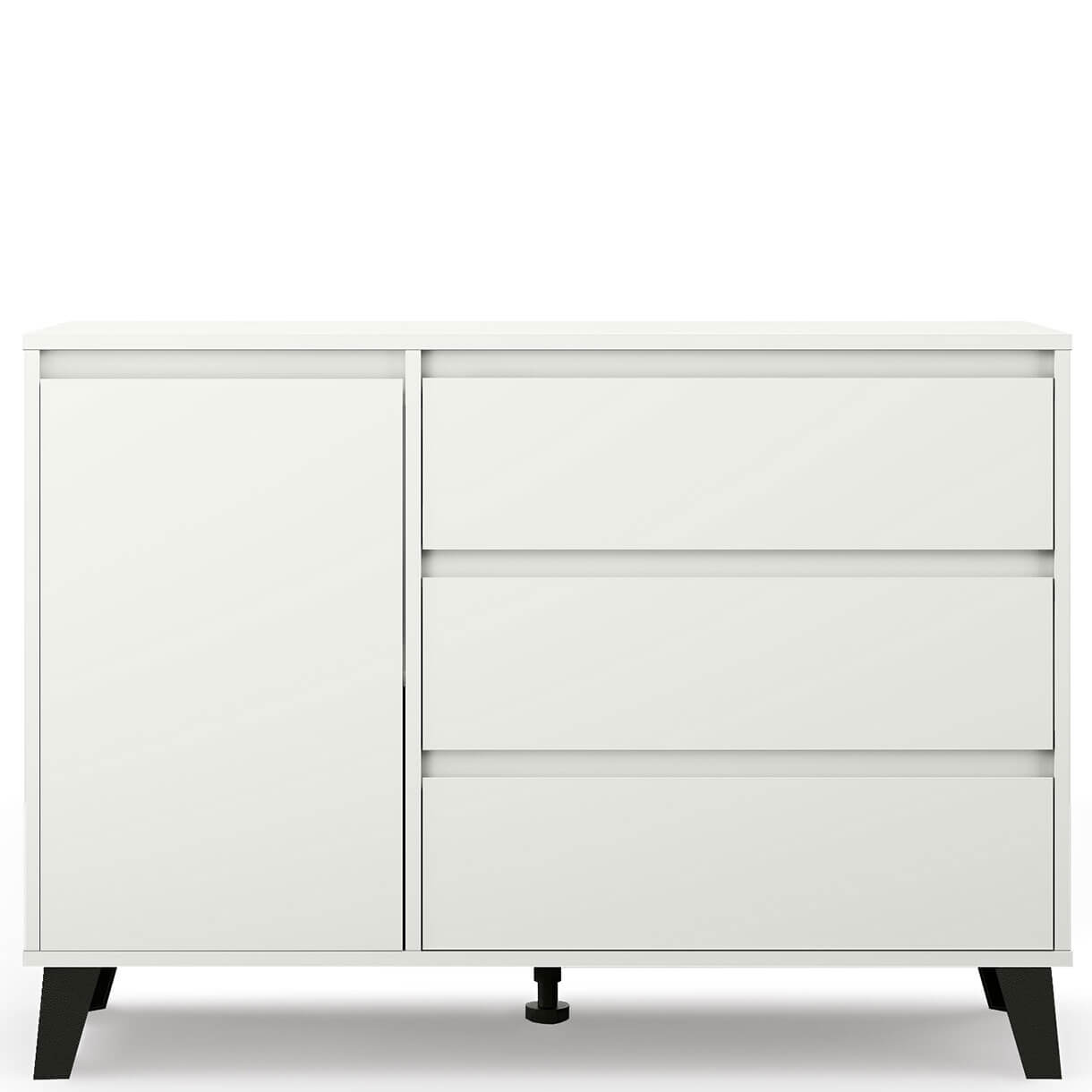 Комод Борг Мебельбос 1D3S містить три шухляди та закрите відділення з полицею всередині.