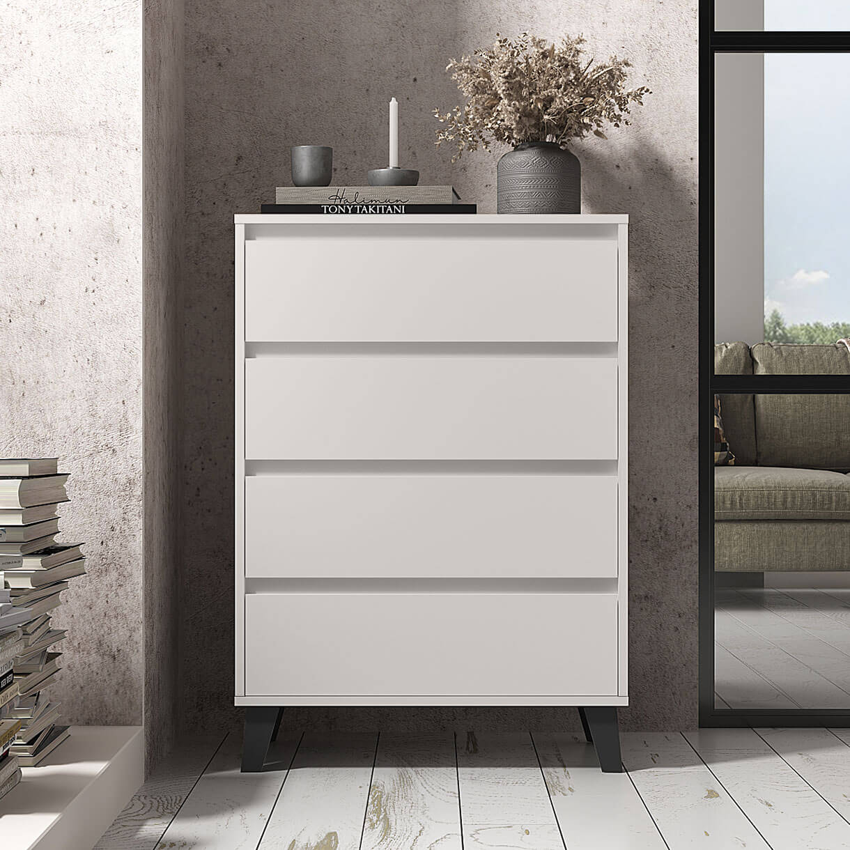 Комод Борг Мебельбос 4S/70 містить чотири шухляди.