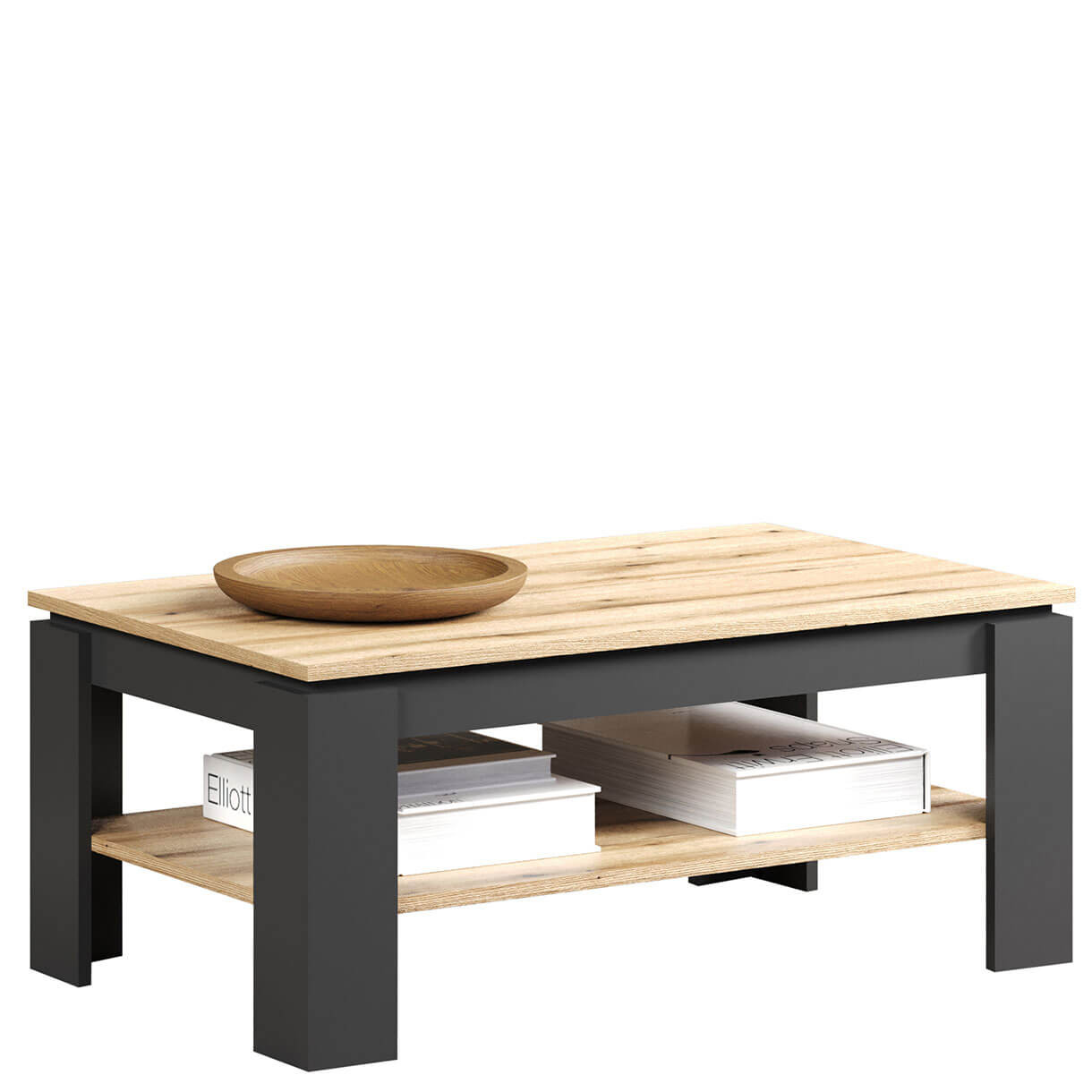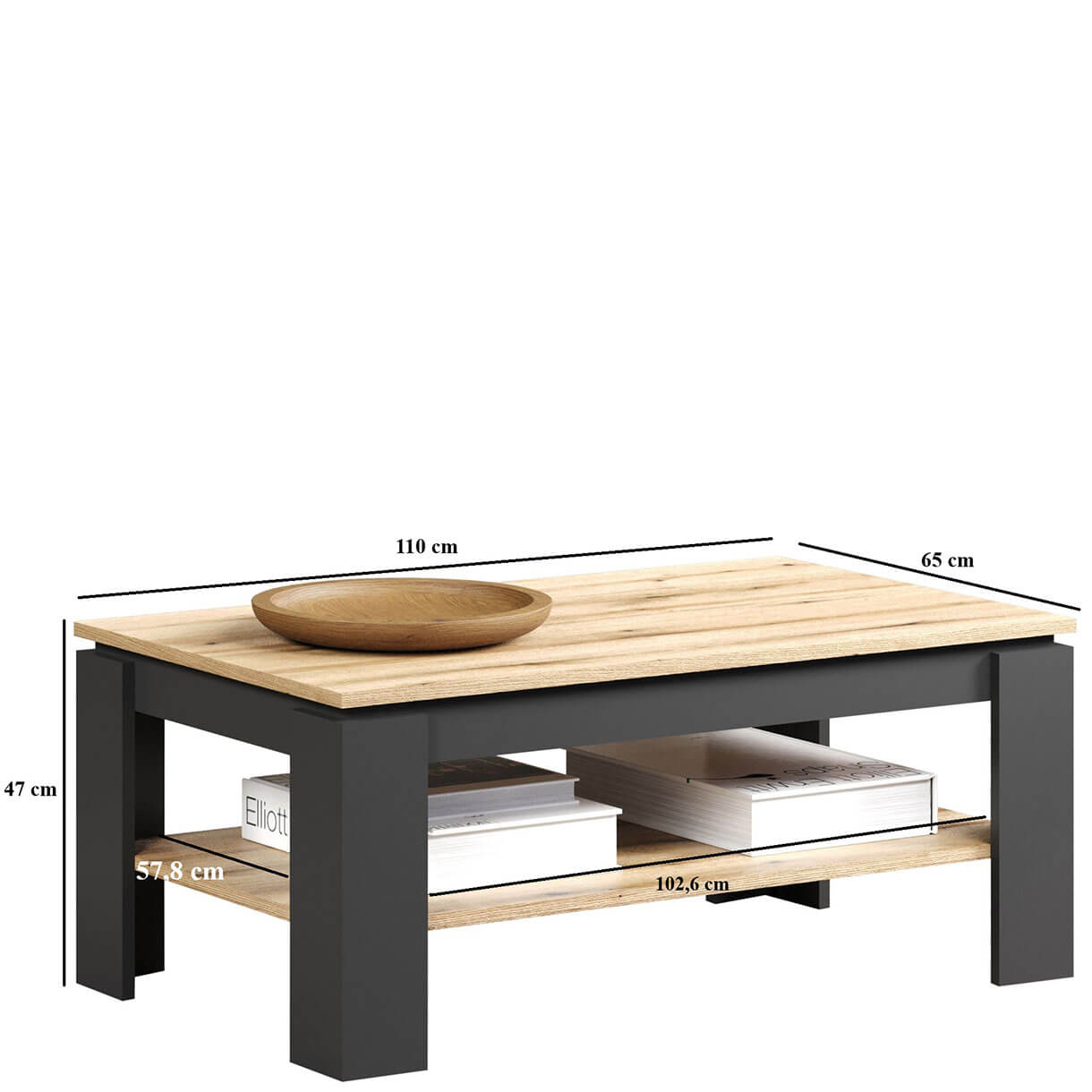 Журнальний столик Естебан Мебельбос 110 обладнаний зручною полицею під прямокутною стільницею.