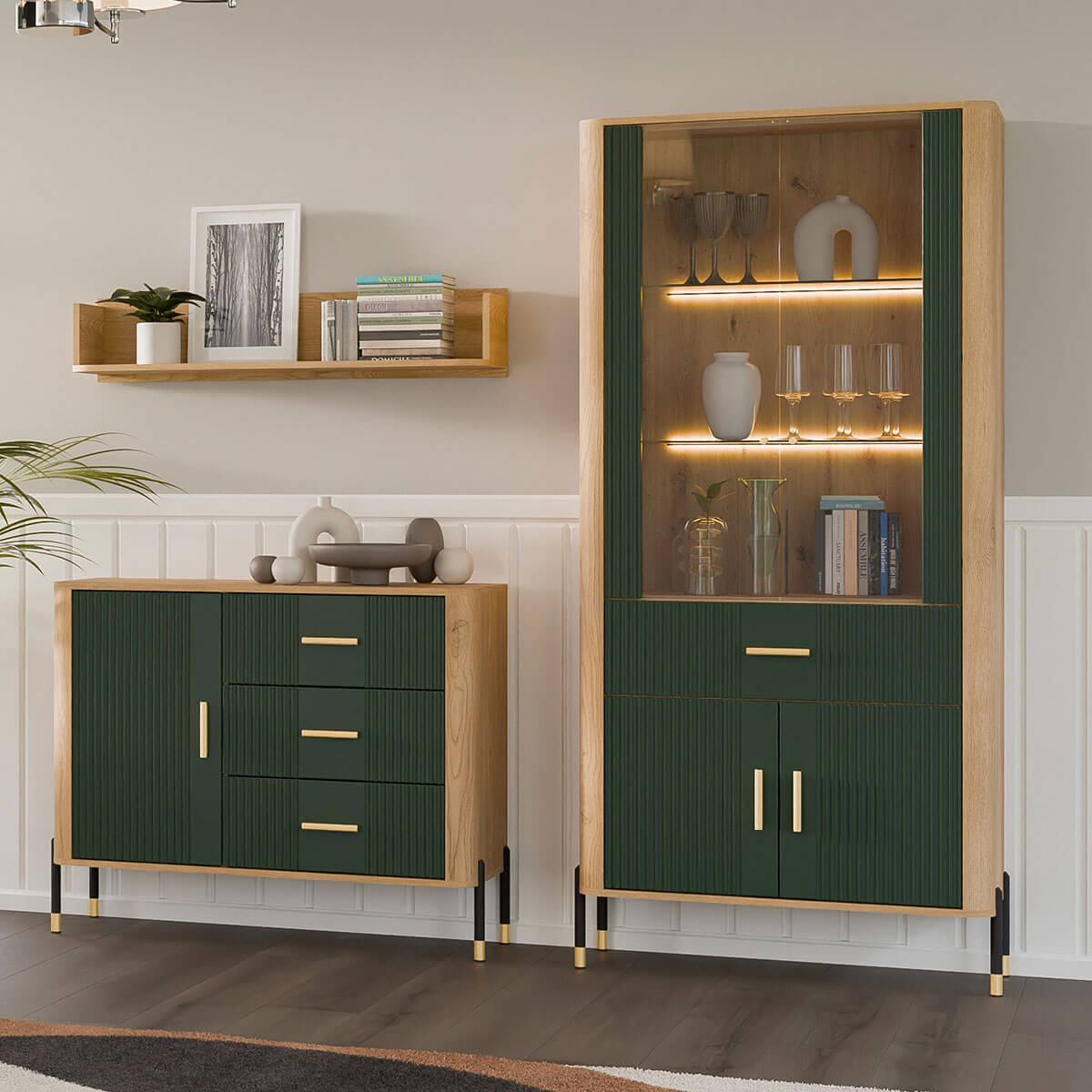 Комод Dante DT03 зелений із золотими ручками з модульної системи DANTE LIVEO.