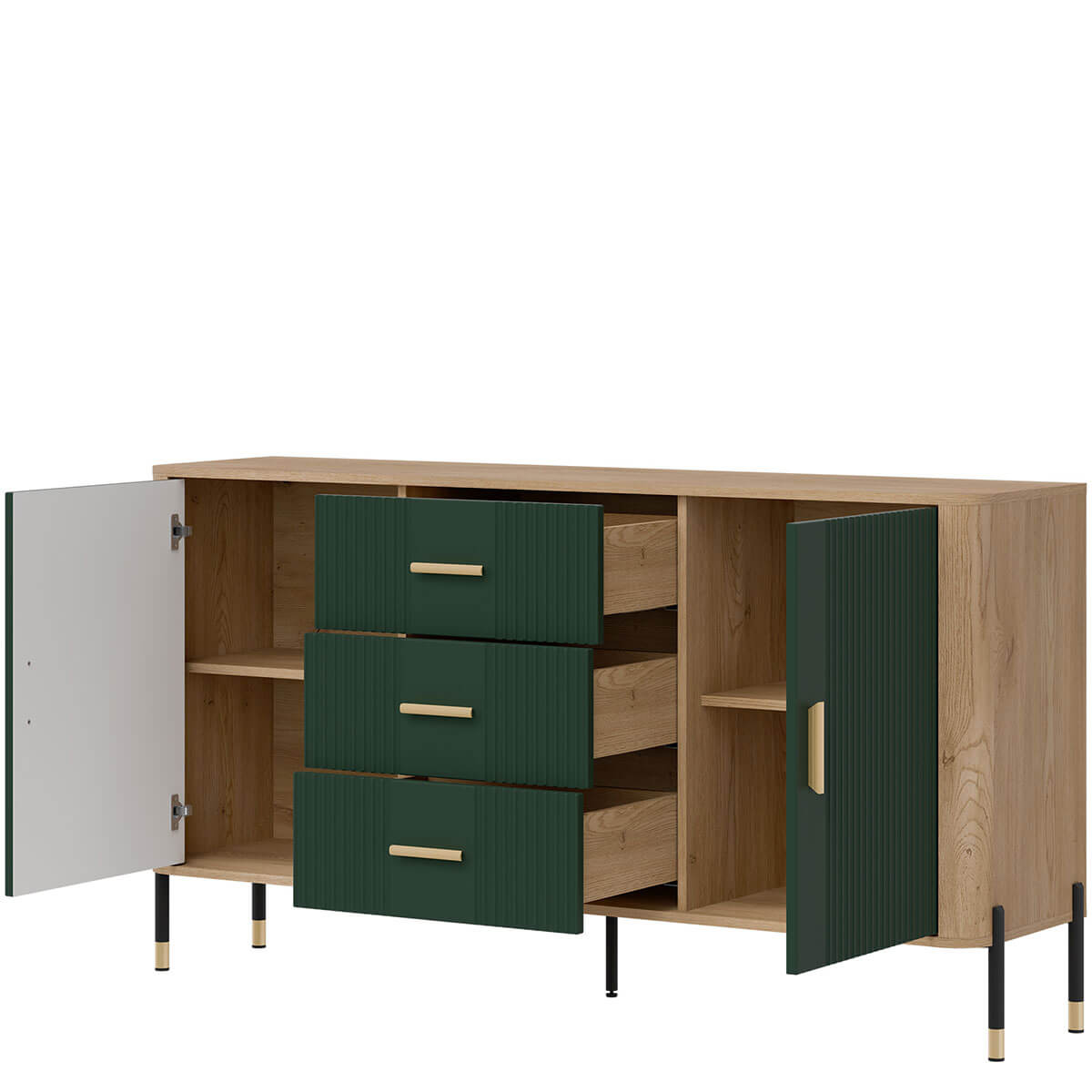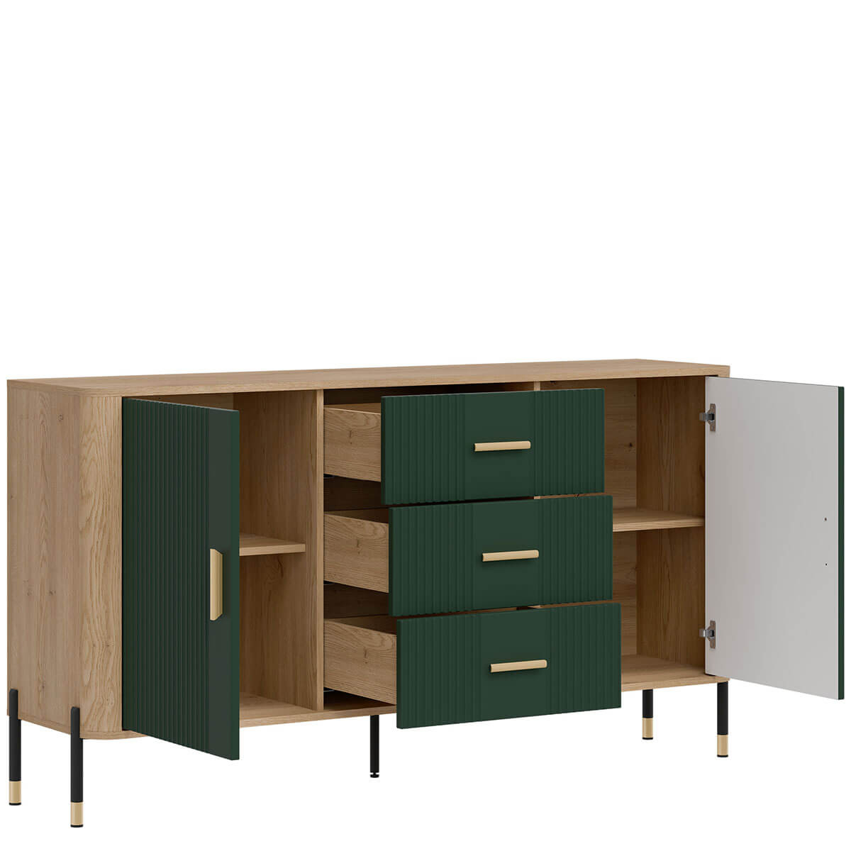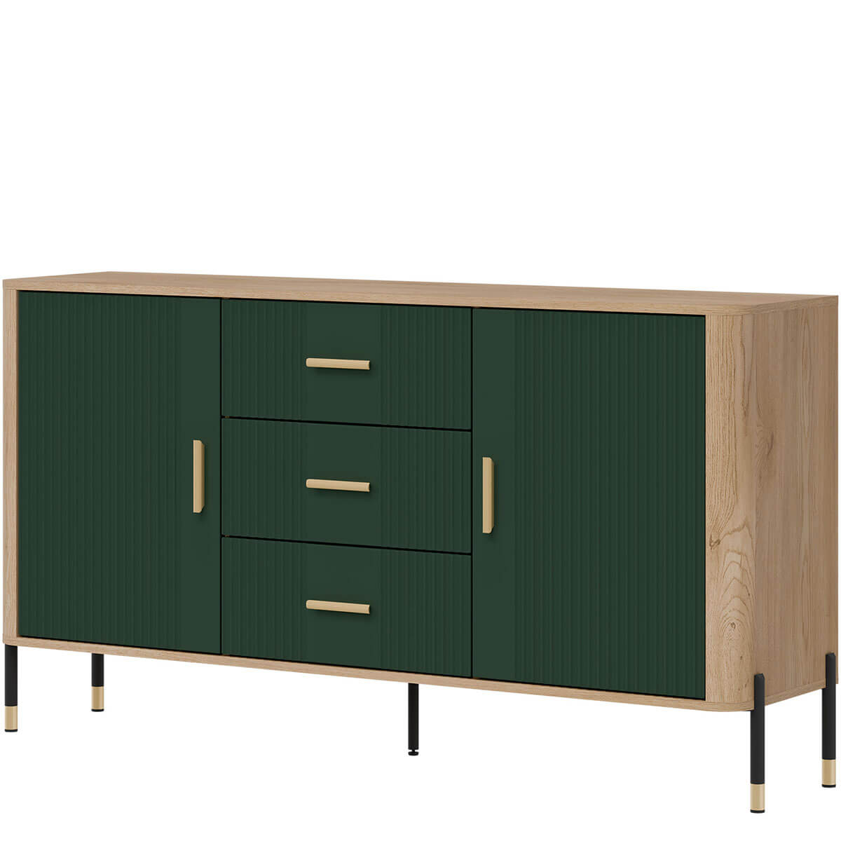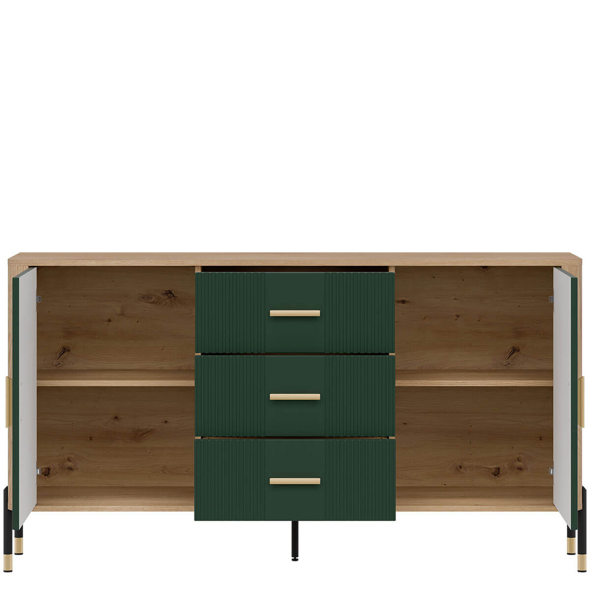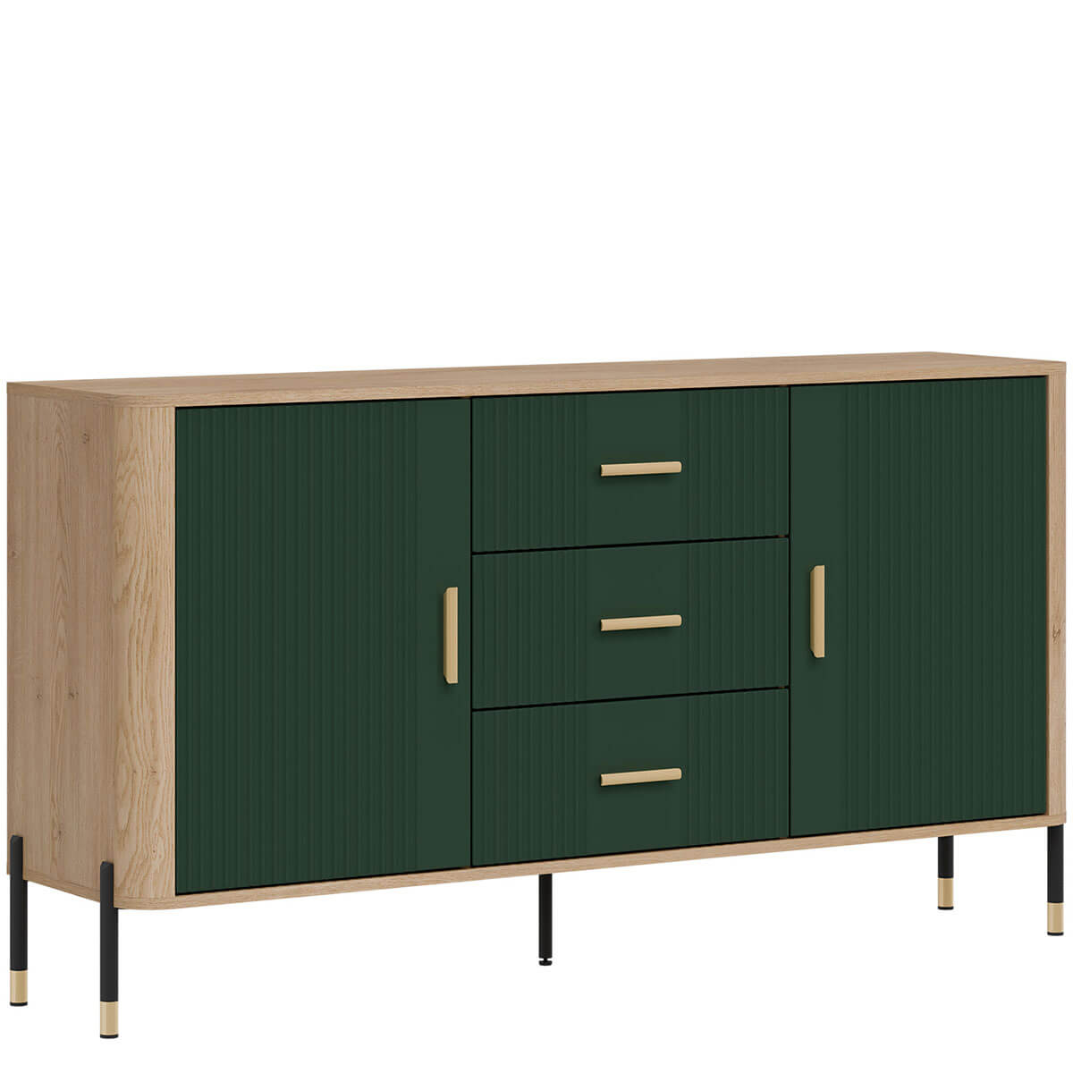 Комод DANTE LIVEO DT06 дуб кремона торро / зелений / золоті ручки 2 Doors 3 Drawers