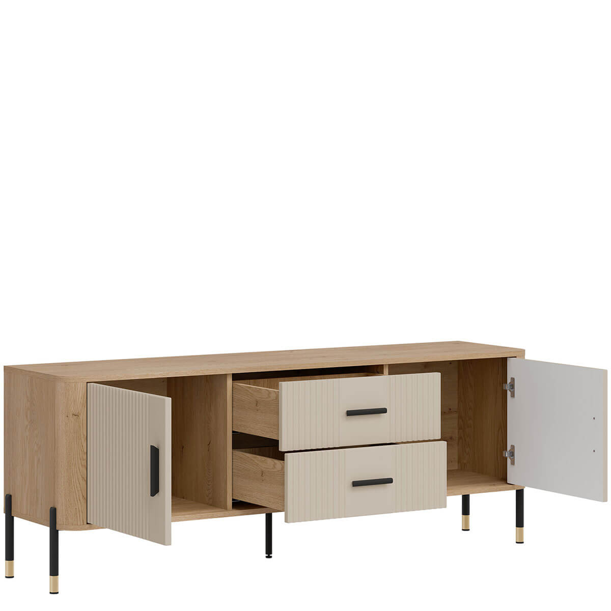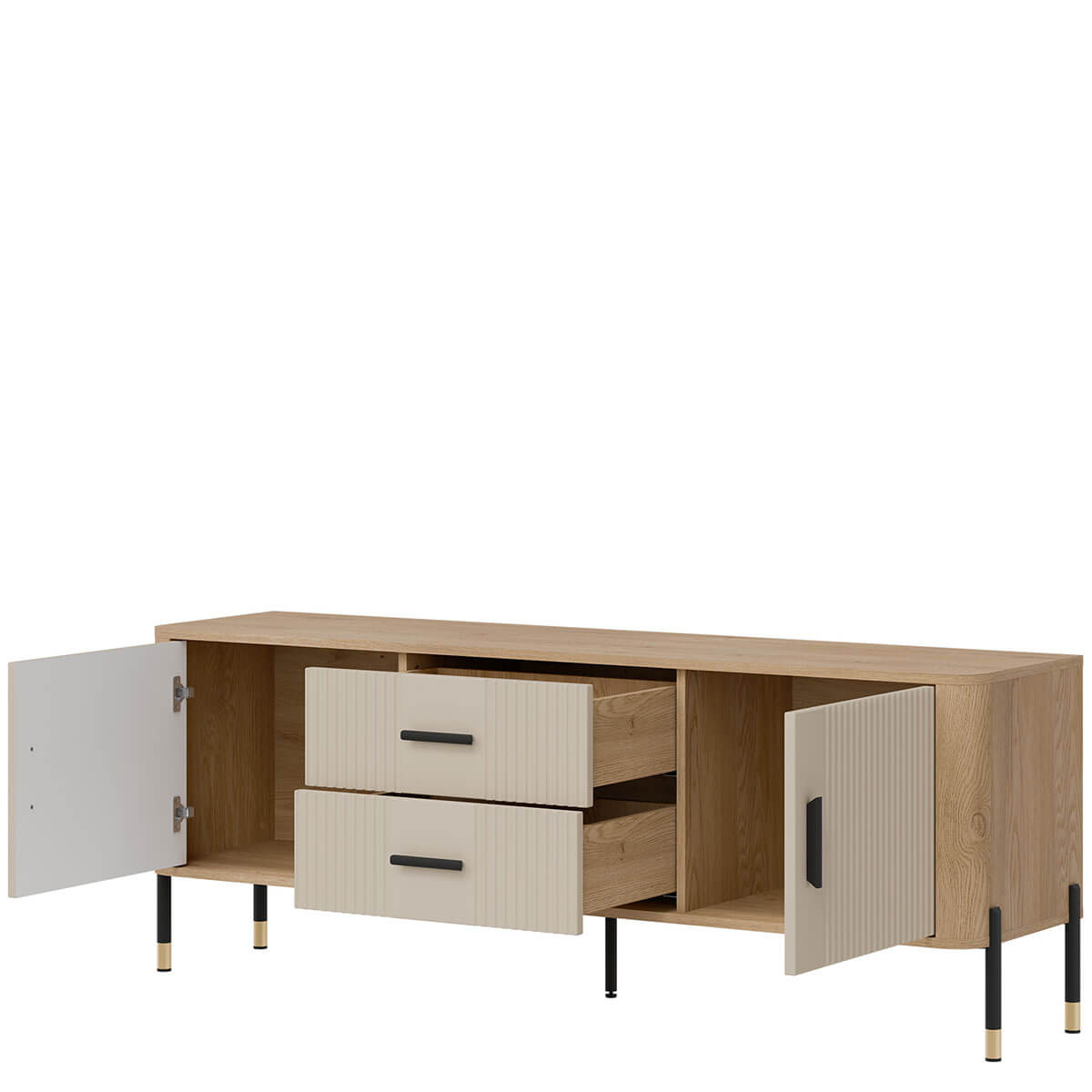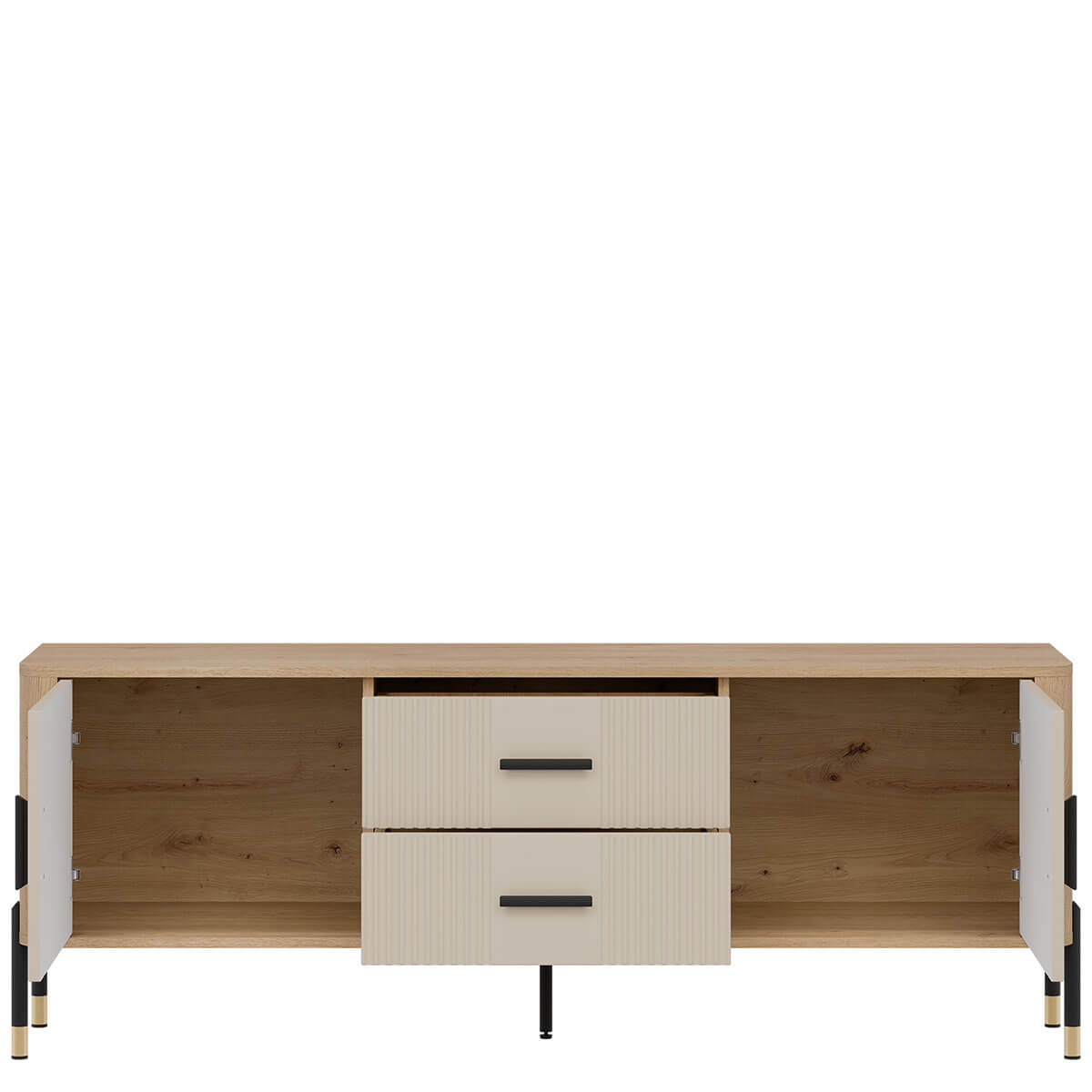 Тумба ТВ Данте Лівео DT01 містить двi шухляди та два закриті відділення.