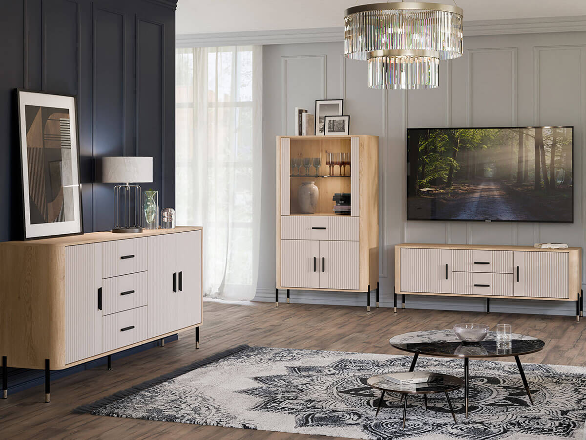 Тумба під телевізор Dante DT01 кашемір із чорними ручками з модульної системи DANTE LIVEO.