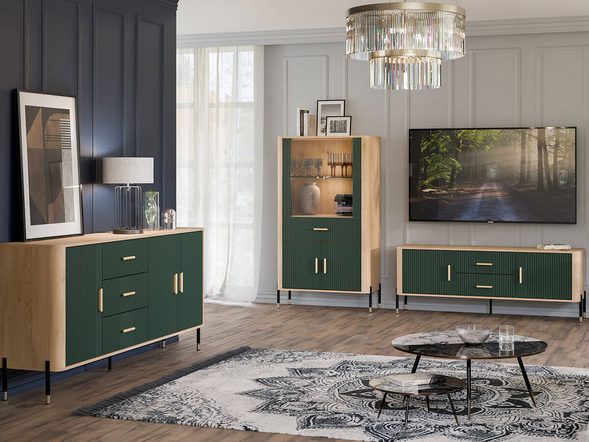 Тумба під телевізор Dante DT01 зелений із золотими ручками з модульної системи DANTE LIVEO.