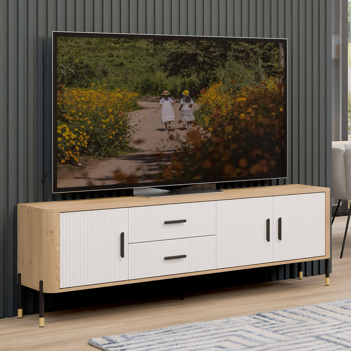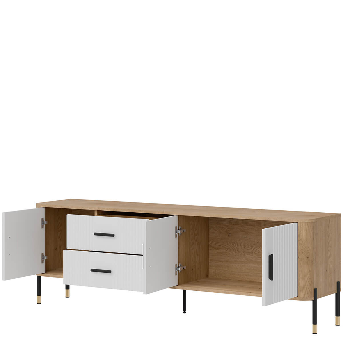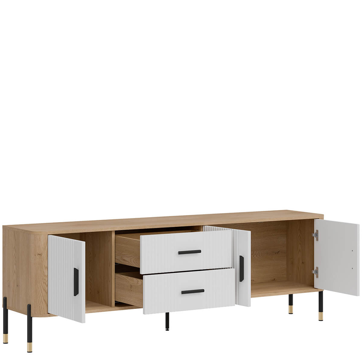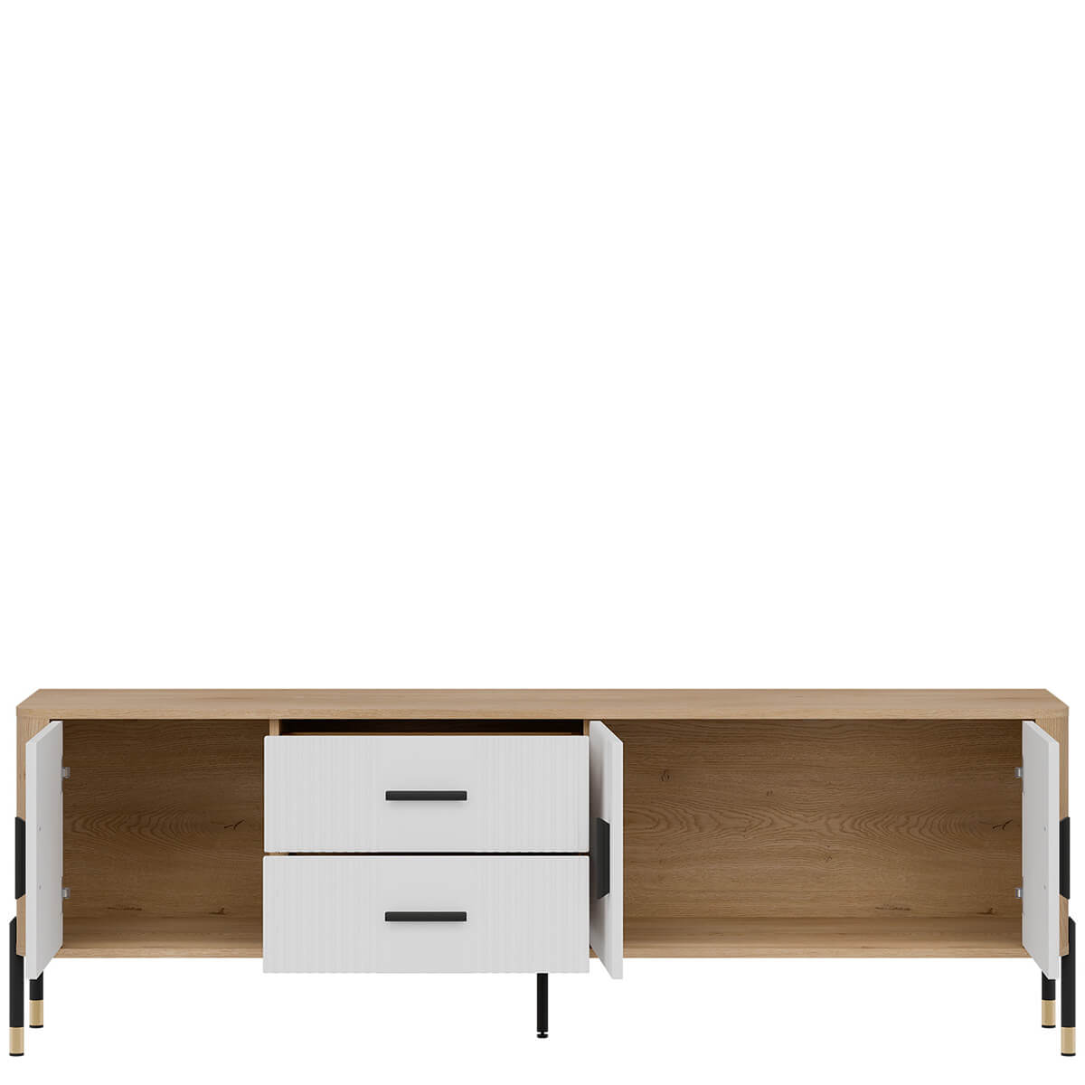 Тумба ТВ Данте Лівео DT02 містить двi шухляди та два закриті відділення.