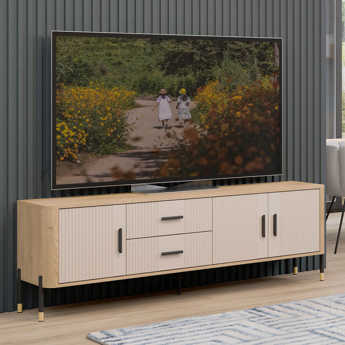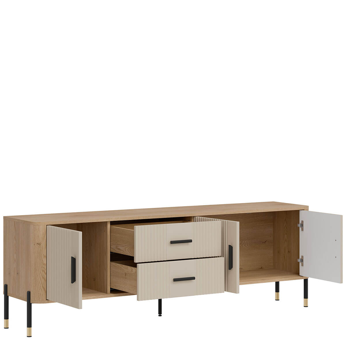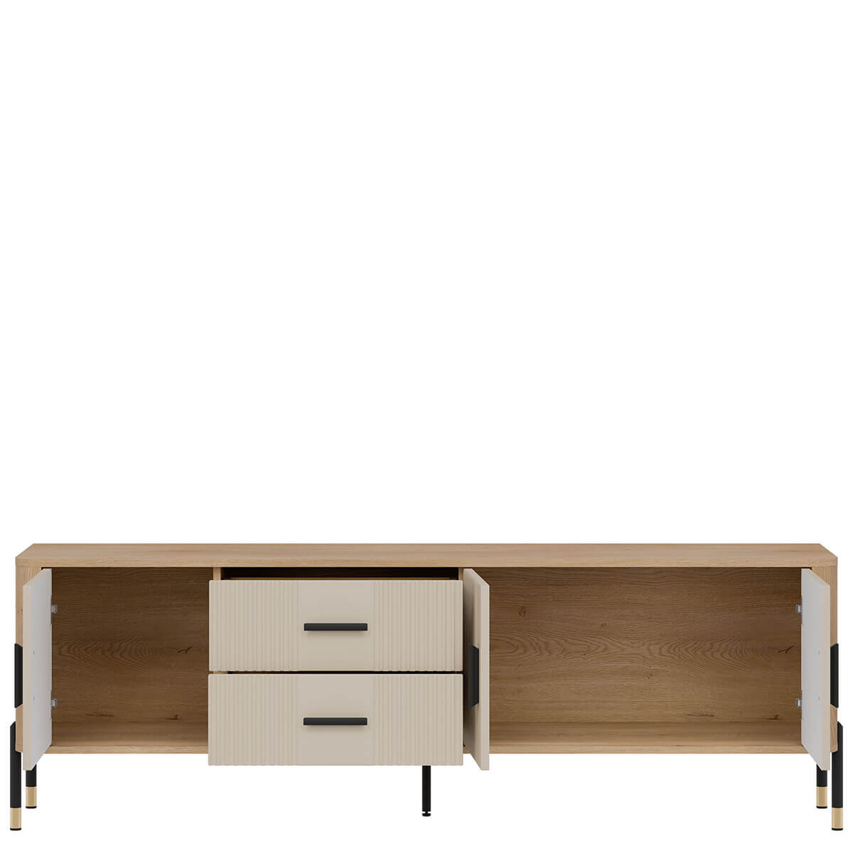 Тумба ТВ Данте Лівео DT02 містить двi шухляди та два закриті відділення.