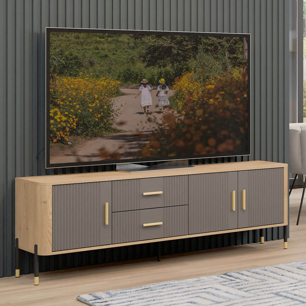 Тумба під телевізор Dante DT02 сірий із золотими ручками з модульної системи DANTE LIVEO.