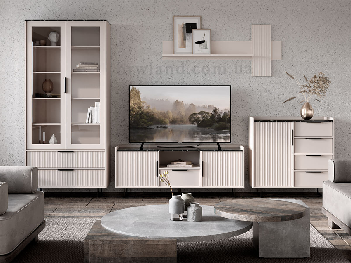 Тумба під телевізор Фреско RTV2D1S кашемір / темний мармур із модульної системи ФРЕСКО БРВ.