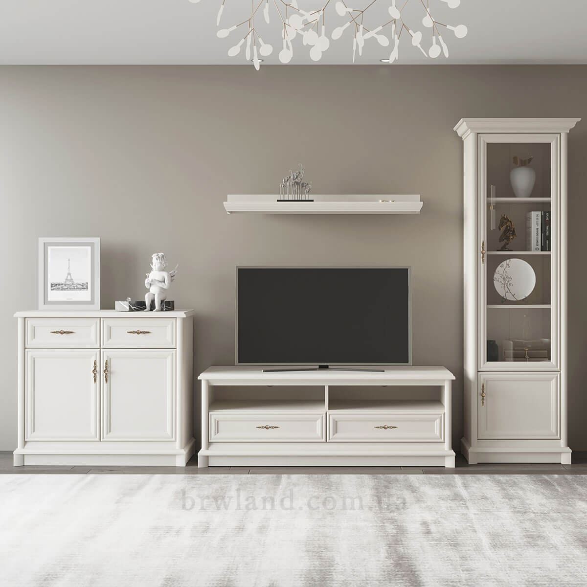Витрина Sonata New Gerbor 1DP содержит два закрытых отделения. За верхней дверью со вставкой из закаленного шлифованного стекла расположены три полки.